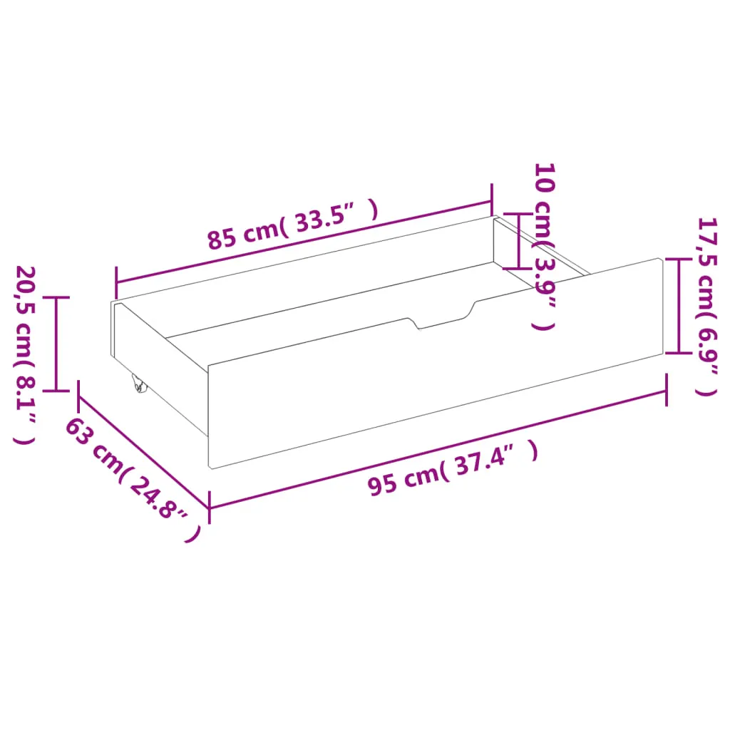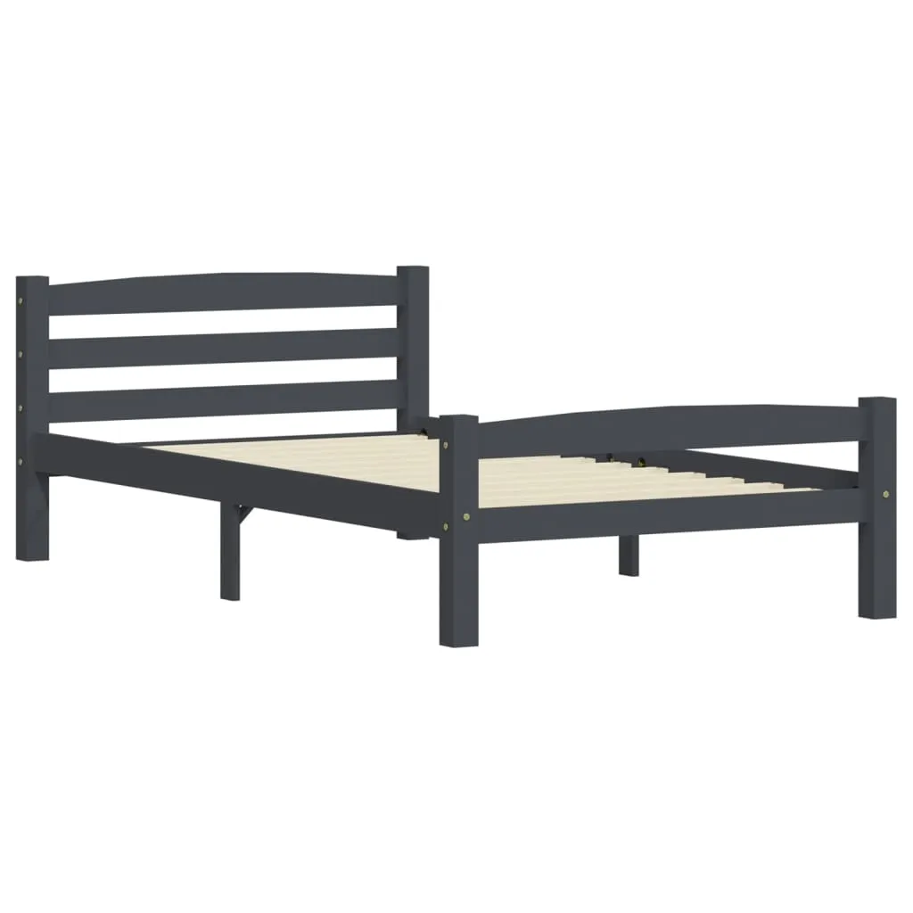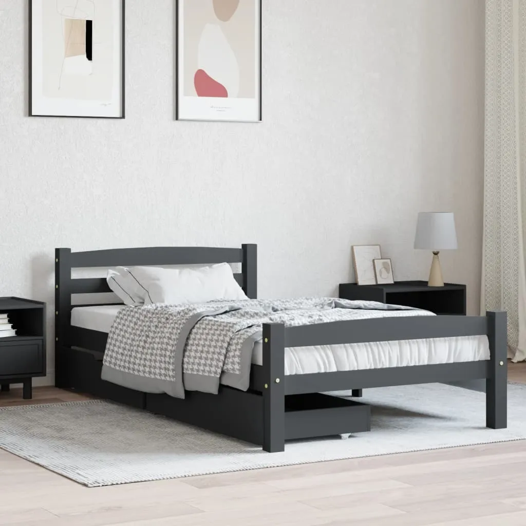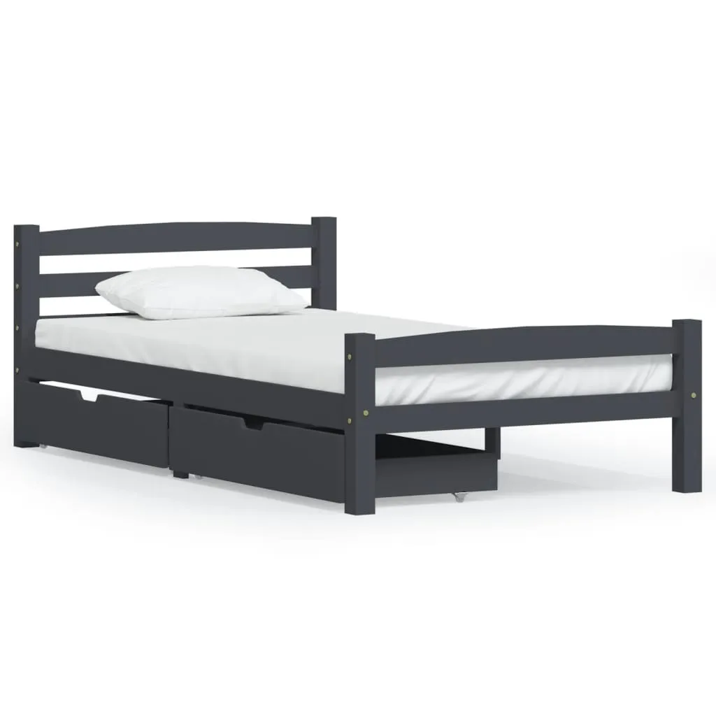 Massivholzbett mit 2 Schubladen Dunkelgrau Kiefer 100x200cm