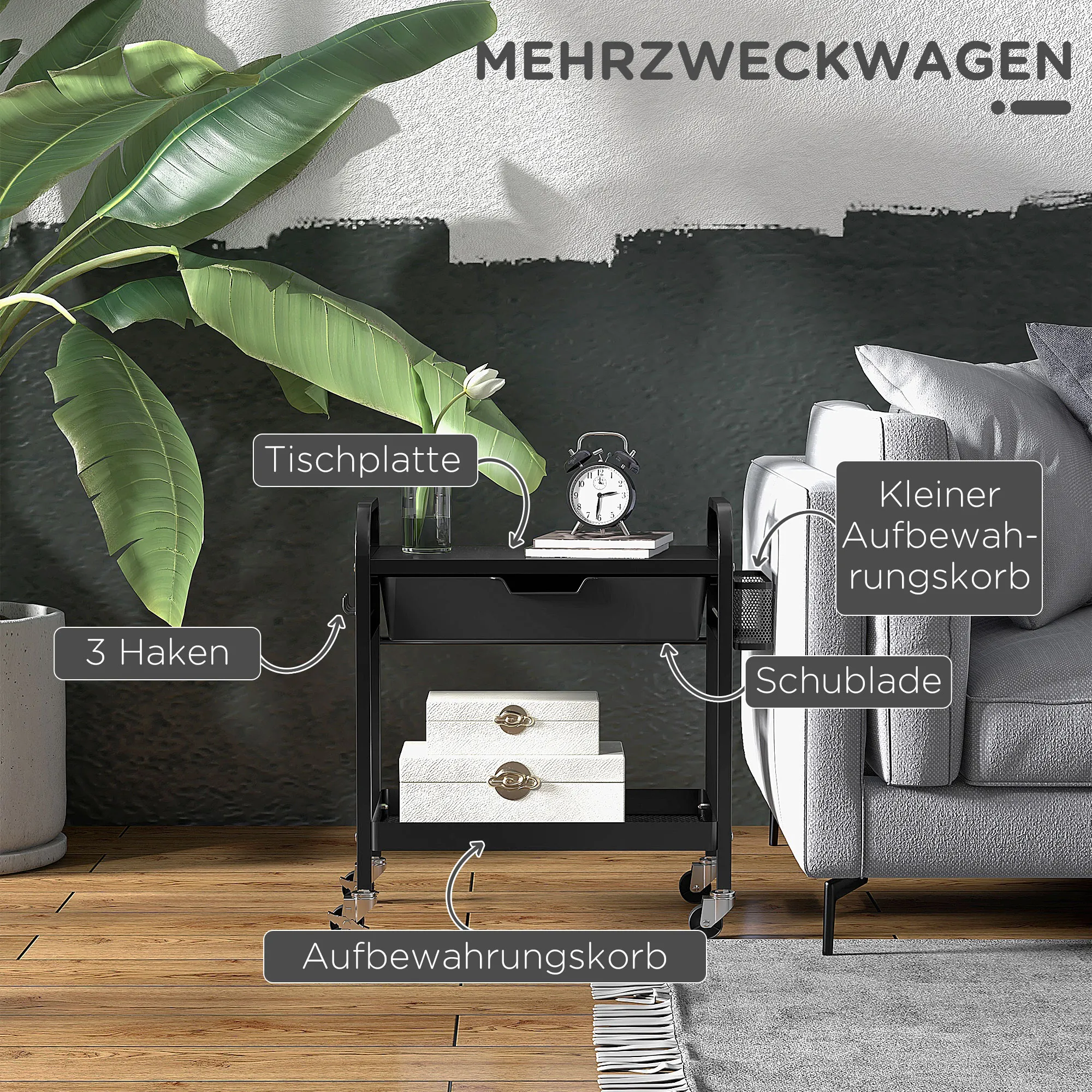 Mehrzweckwagen mit 1 Schublade, 1 Ablage, 4 Rollen, Küchenwagen, Schwarz