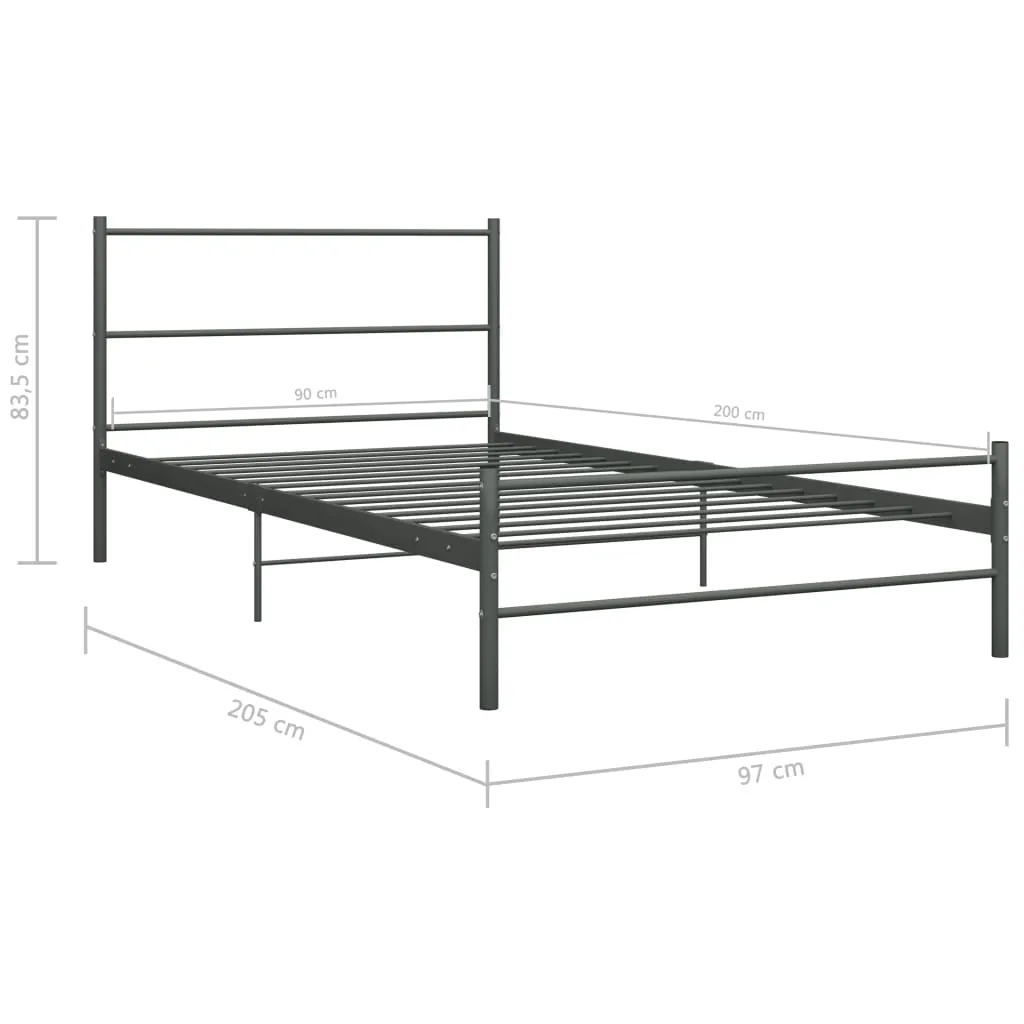Metallbett 90x200 cm Grau mit Lattenrost, 205x97x83,5 cm
