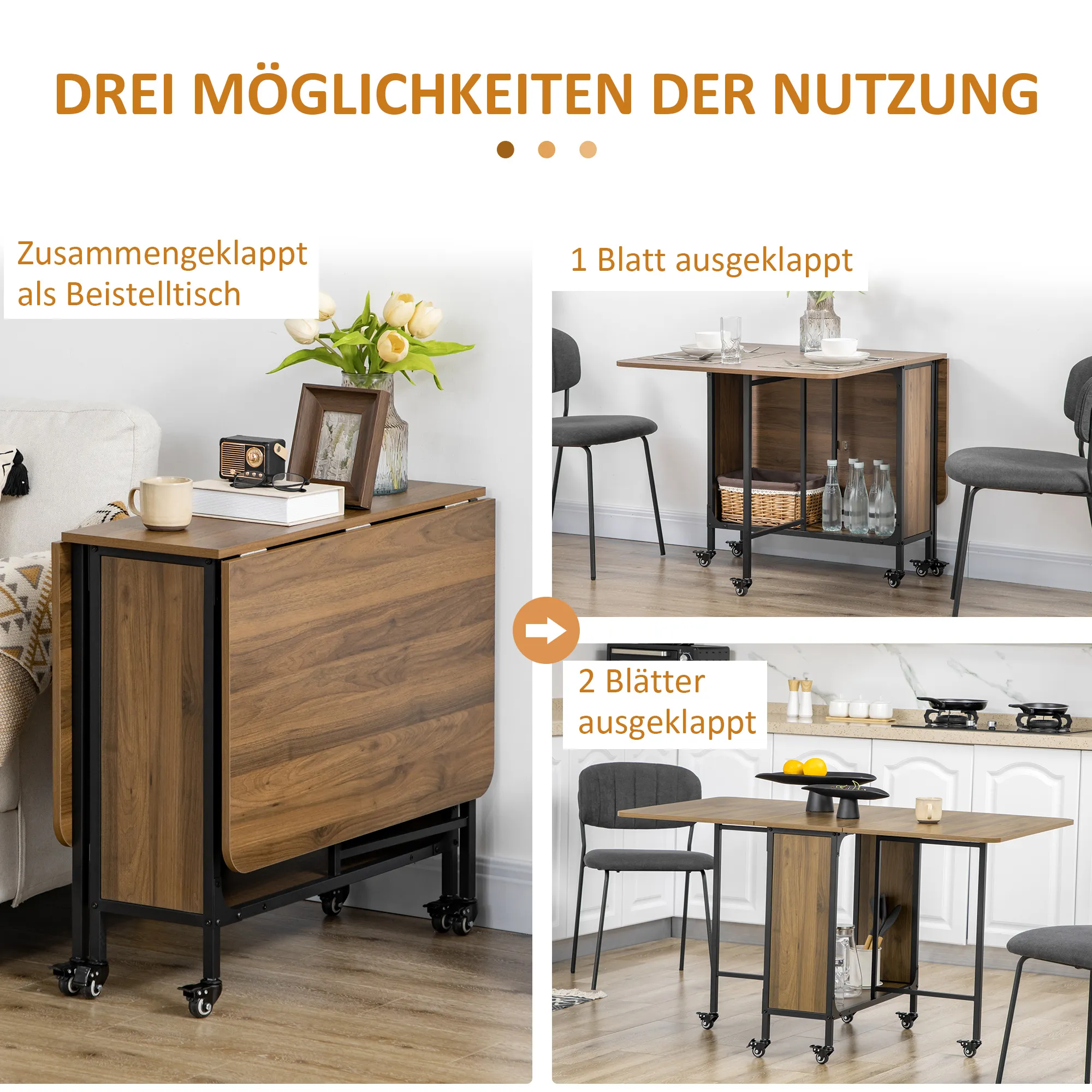 Mobiler Klapptisch Klapptisch, 2 klappbare Flächen, 130 cm x 80 cm x 74 cm, Braun