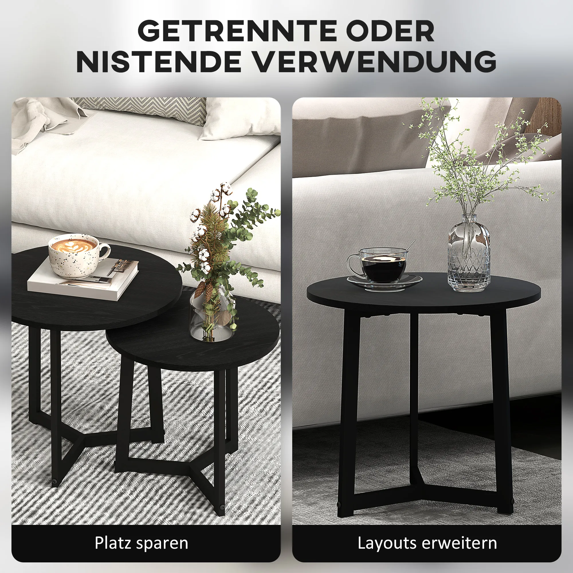Moderner Couchtisch als 2er-Set, Metallrahmen, MDF, Rundes Design, ineinander verschiebbar, Schwarz
