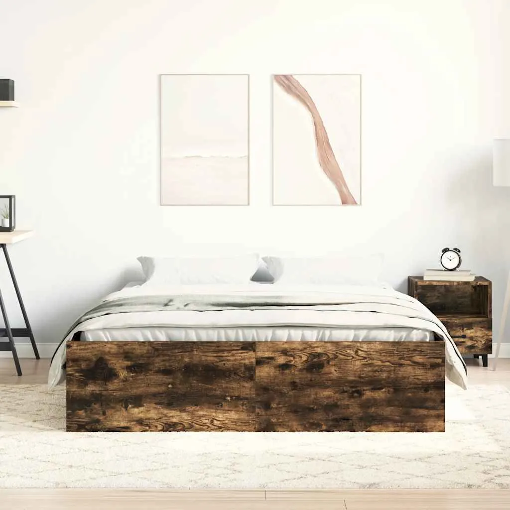 Modernes Bettgestell 193x123x35 cm in Räuchereiche mit Stauraum