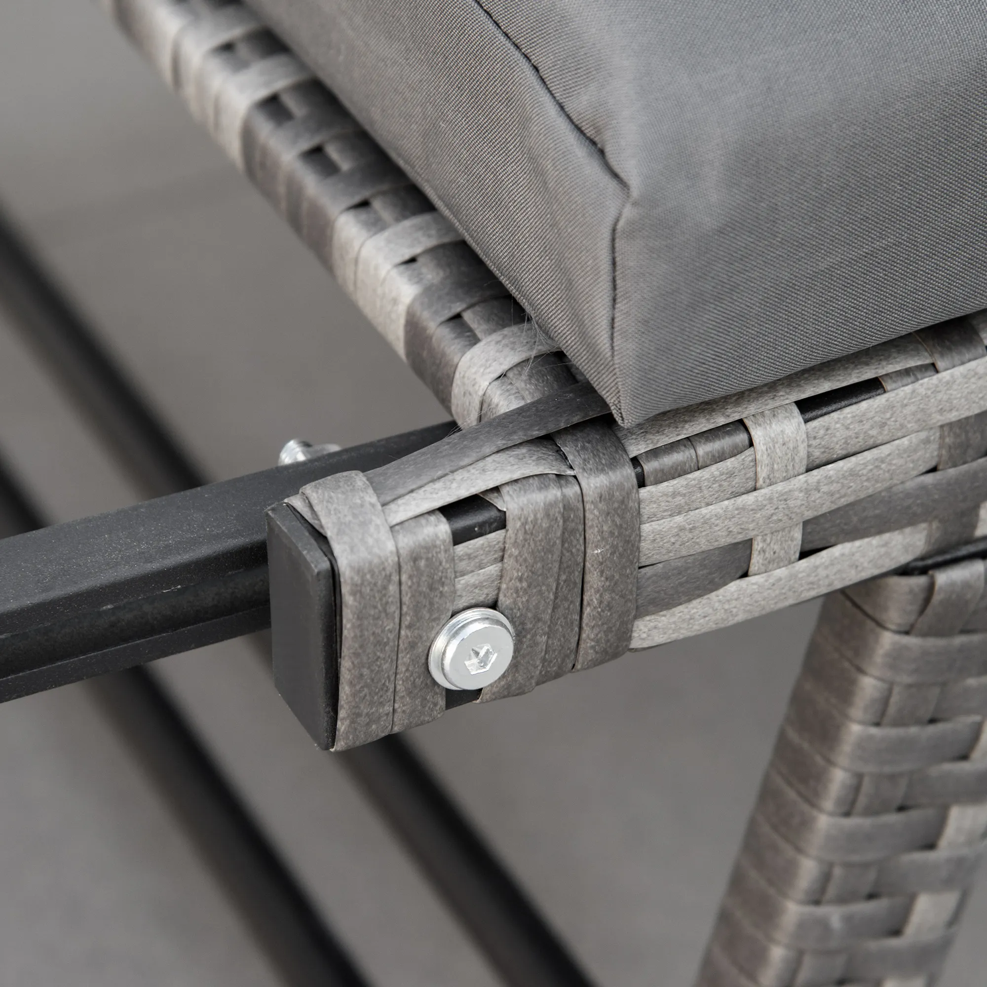 - Robuster, rostfreier Stahlrahmen mit wetterbeständigem Kunststoffrattan.