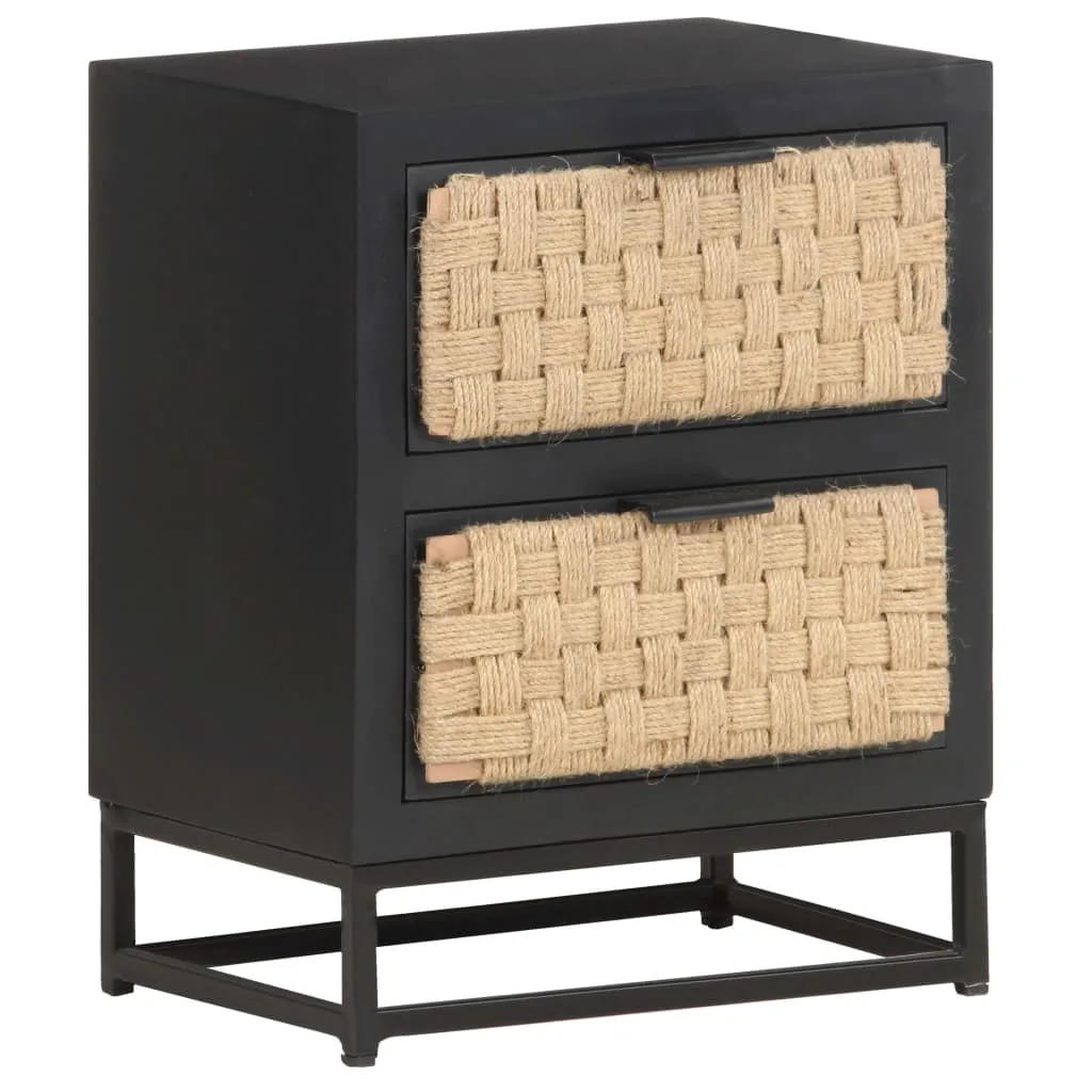 - Material: Mango-Massivholz mit schwarzem Finish, Eisen mit schwarzer Pulverbeschichtung, Jute