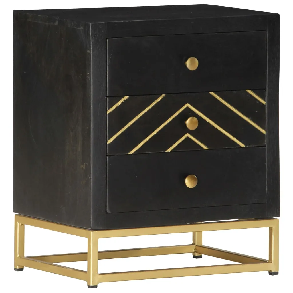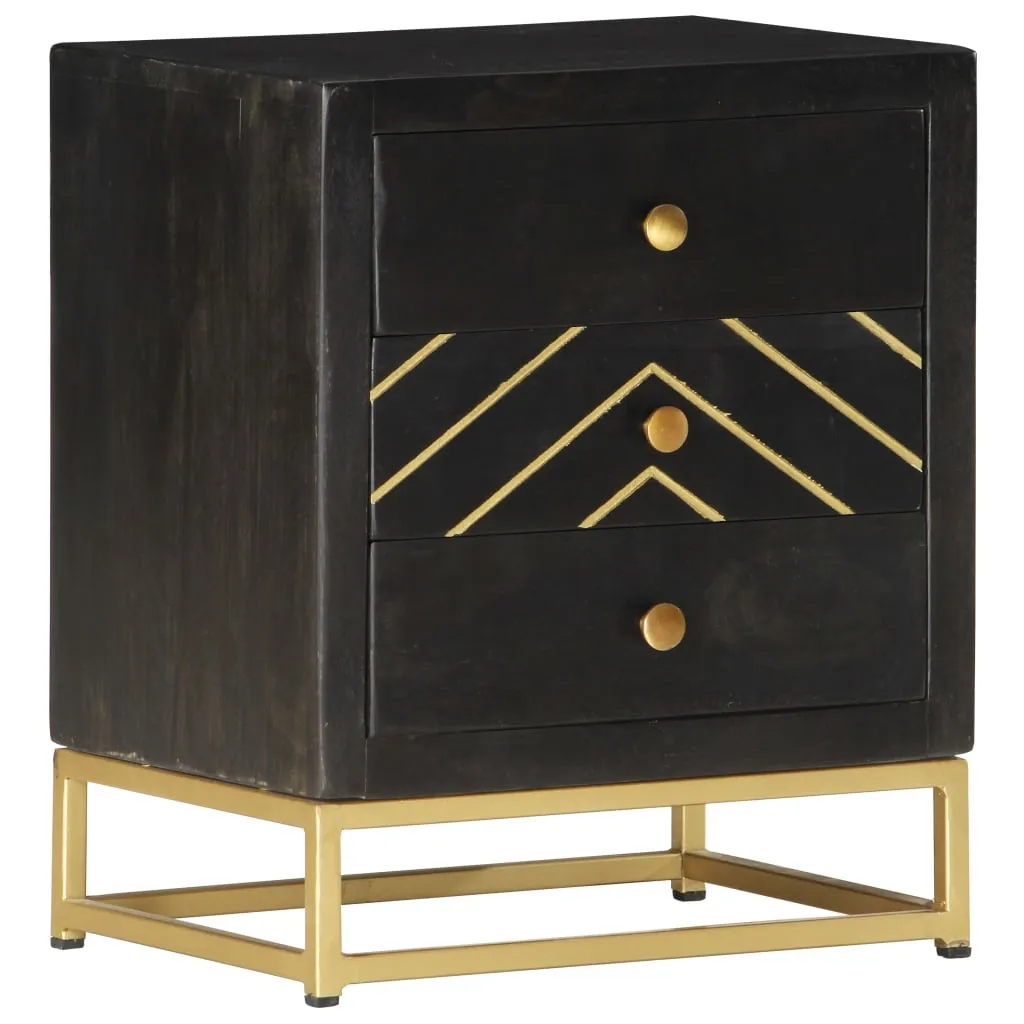 Nachttisch Schwarz und Golden 40 x 30 x 50 cm Mango Massivholz