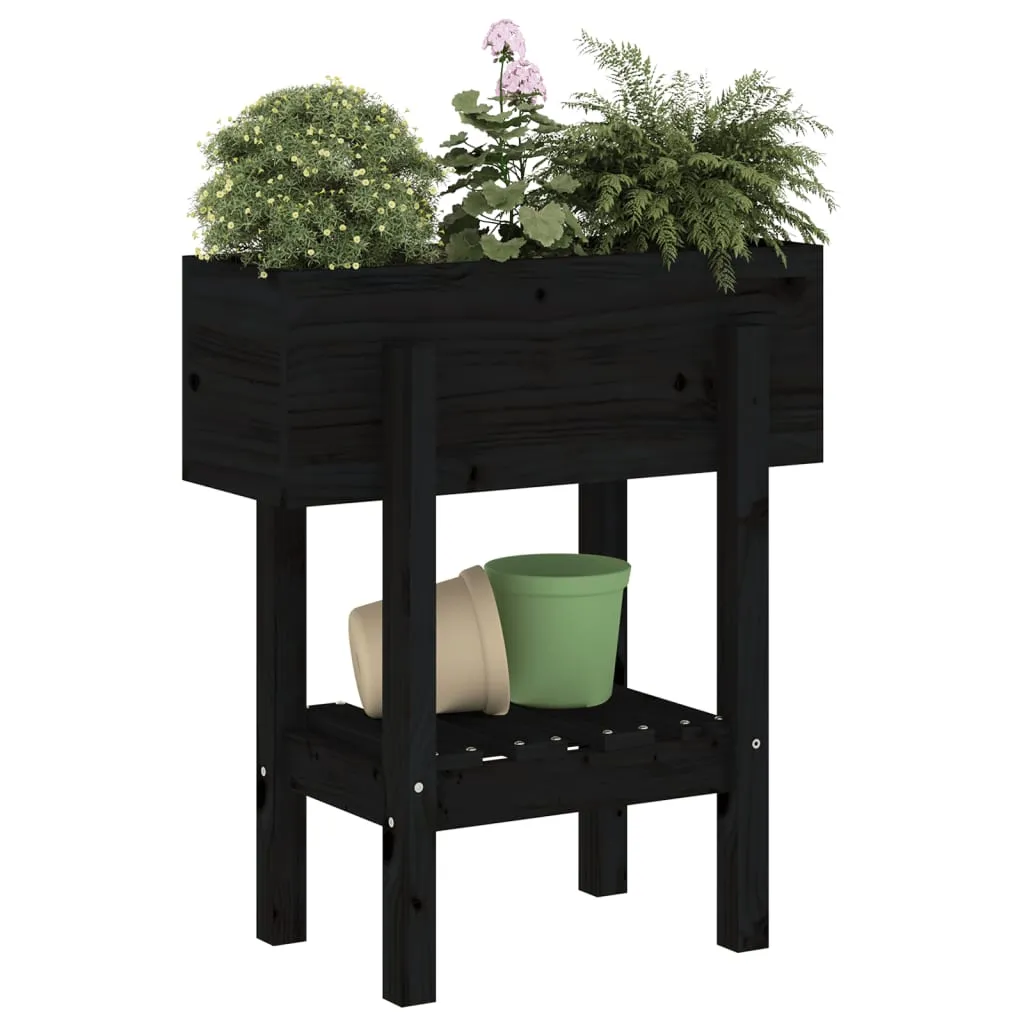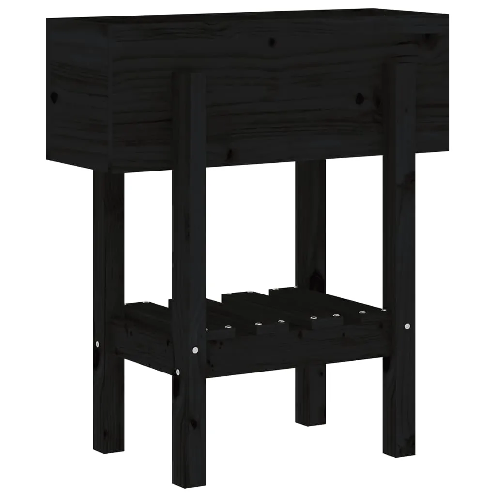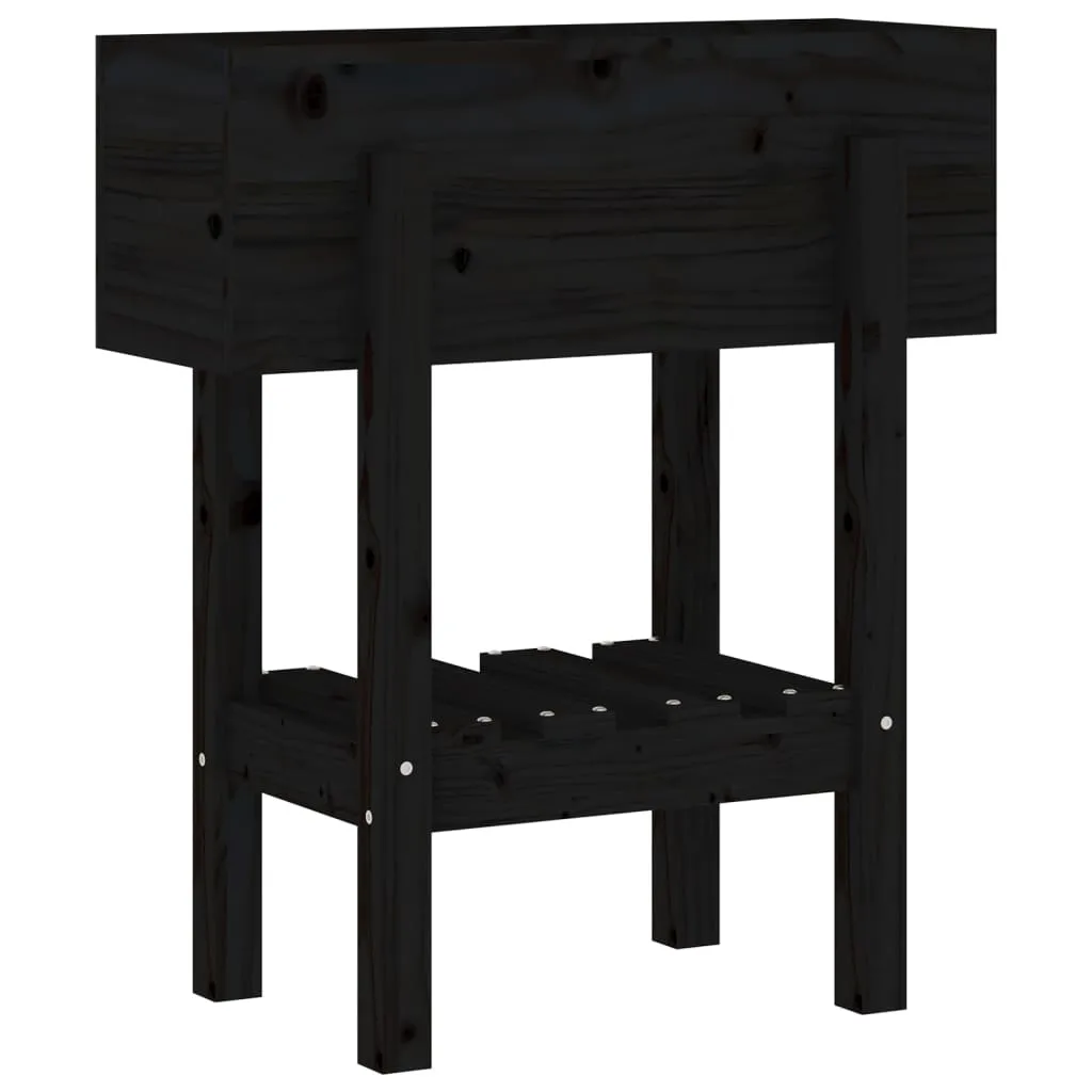 Pflanzkübel aus Massivholz 62 x 30 x 69 cm Schwarz mit Ablage