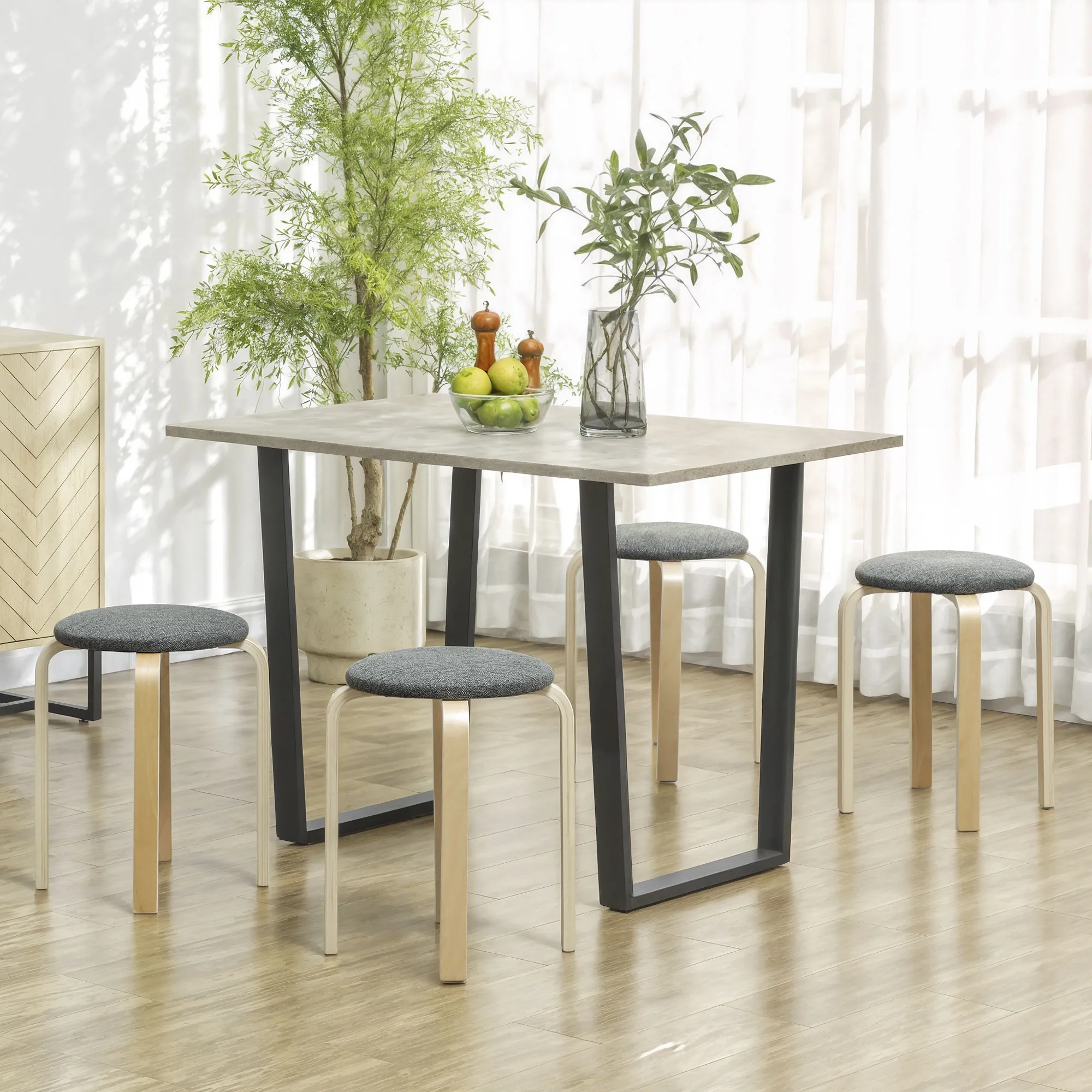 Beschreibung:- Stapeln Sie die vier Hocker einfach, um Platz zu sparen, wenn sie nicht in Gebrauch sind