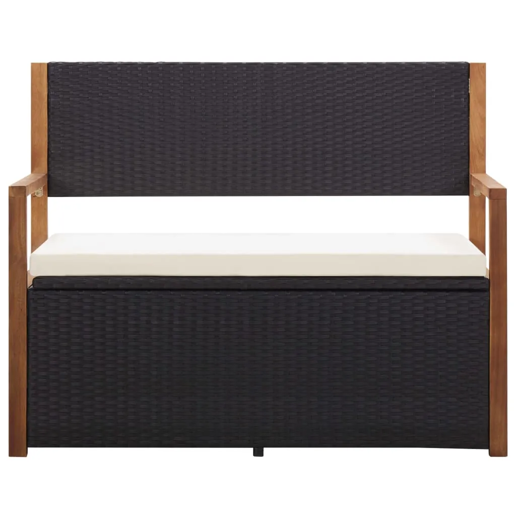 Poly Rattan Aufbewahrungsbank 115x50x85 cm in Natur, Schwarz, Cremeweiß