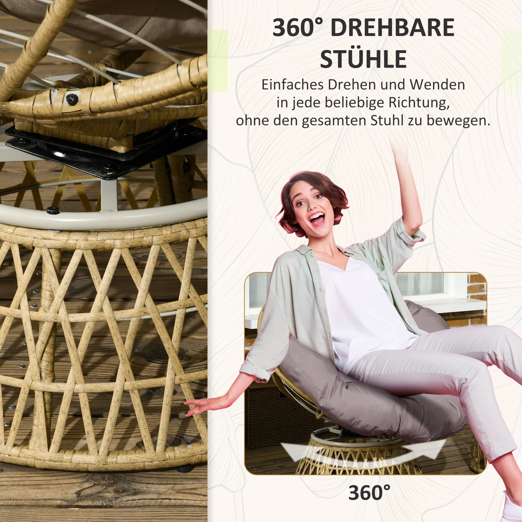 - Die um 360° drehbaren Stühle verbessern das Sitzerlebnis für Gespräche und Sonnenbeobachtung.