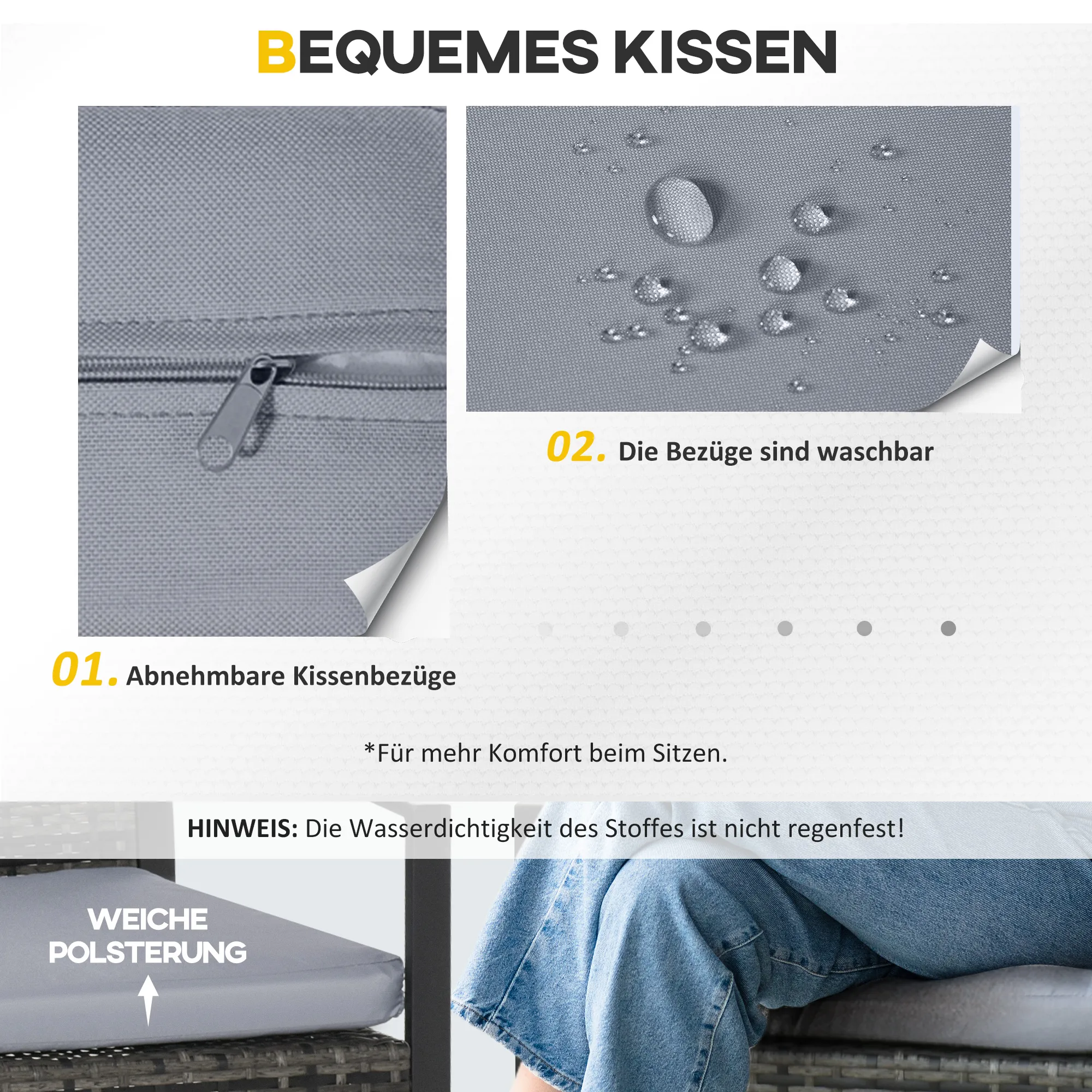 Rattan Gartenmöbel Set für 2 Personen Polyrattan Gartenmöbel Set Balkonmöbel Set mit Kissen Garten Grau