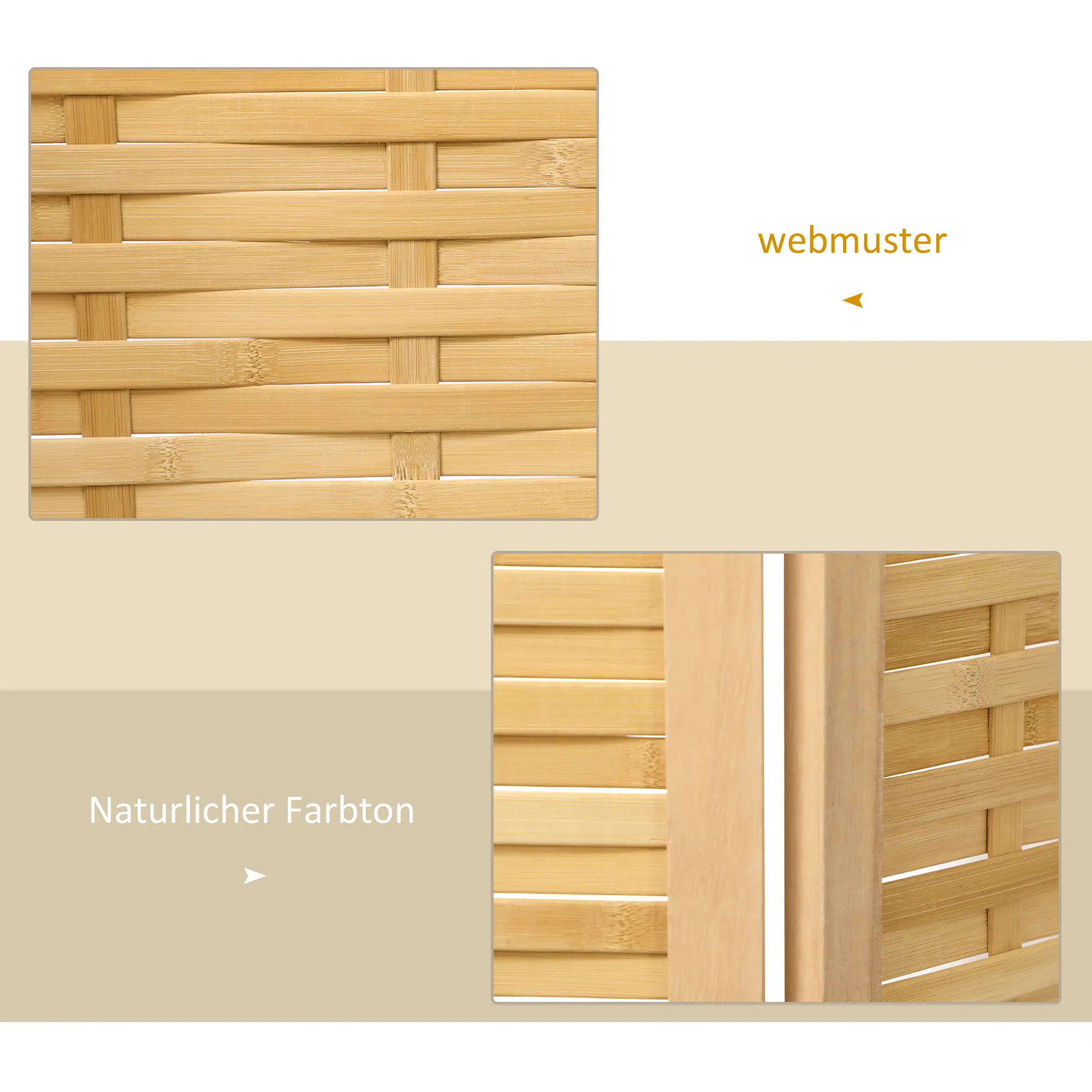 Raumteiler Klappbare Trennwand Sichtschutz, Bambus, 3-teilig, 120 cm x 170 cm x 1,8 cm, Natur