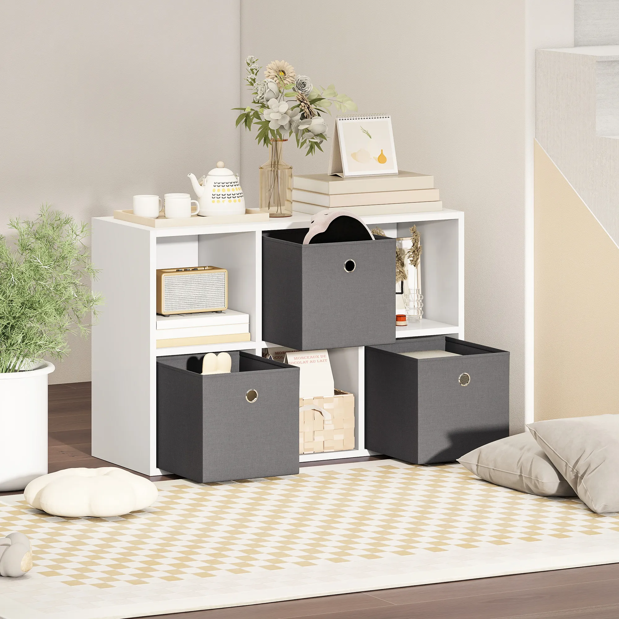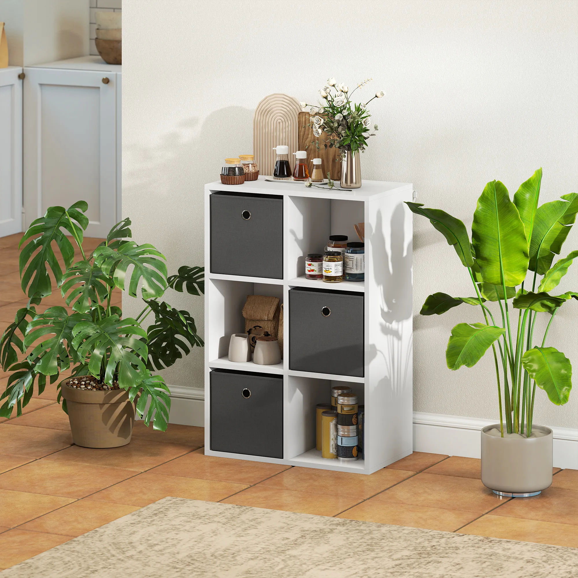 Regal mit 6 Fächern und 3 Stoffschubladen, Aufbewahrungsregal, vielseitig, Grau
