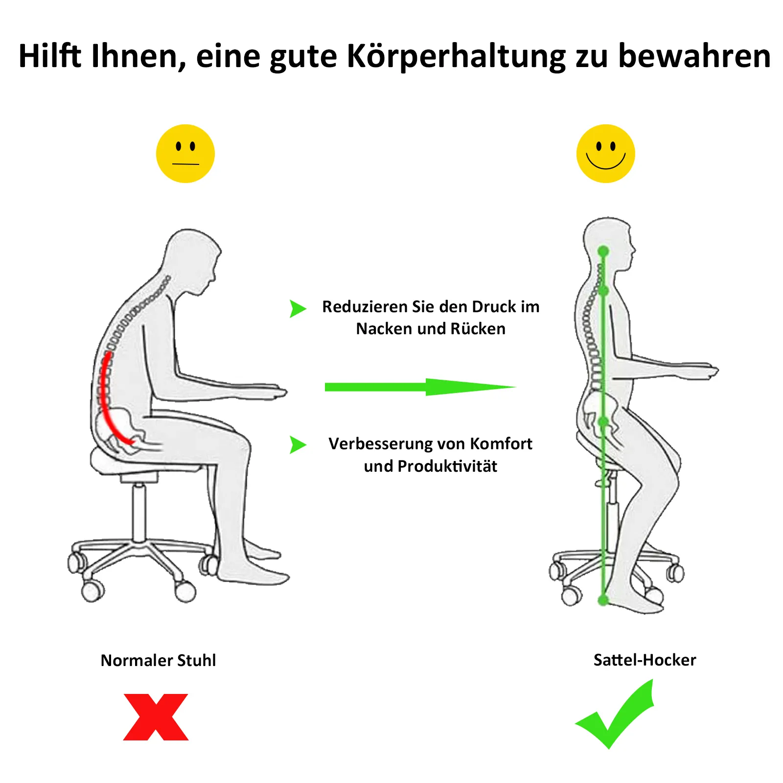 Unser Rollhocker ist vielseitig einsetzbar. Je nach Situation können Sie die Sitzhöhe zwischen 45-57cm komfortabel einstellen. Dank der bequemen Polsterung ist auch längeres Sitzen kein Problem. Für extra Halt sorgt die gemütliche Rückenlehne. Durch sein modernes und formschönes Design eignet sich der Drehhocker besonders für den Einsatz in Kosmetikstudios oder Friseursalons. Aber auch als Arbeitshocker in Werkstätten, Arztpraxen oder als praktisches Accessoir für Zuhause ist er ein hervorragender Begleiter.