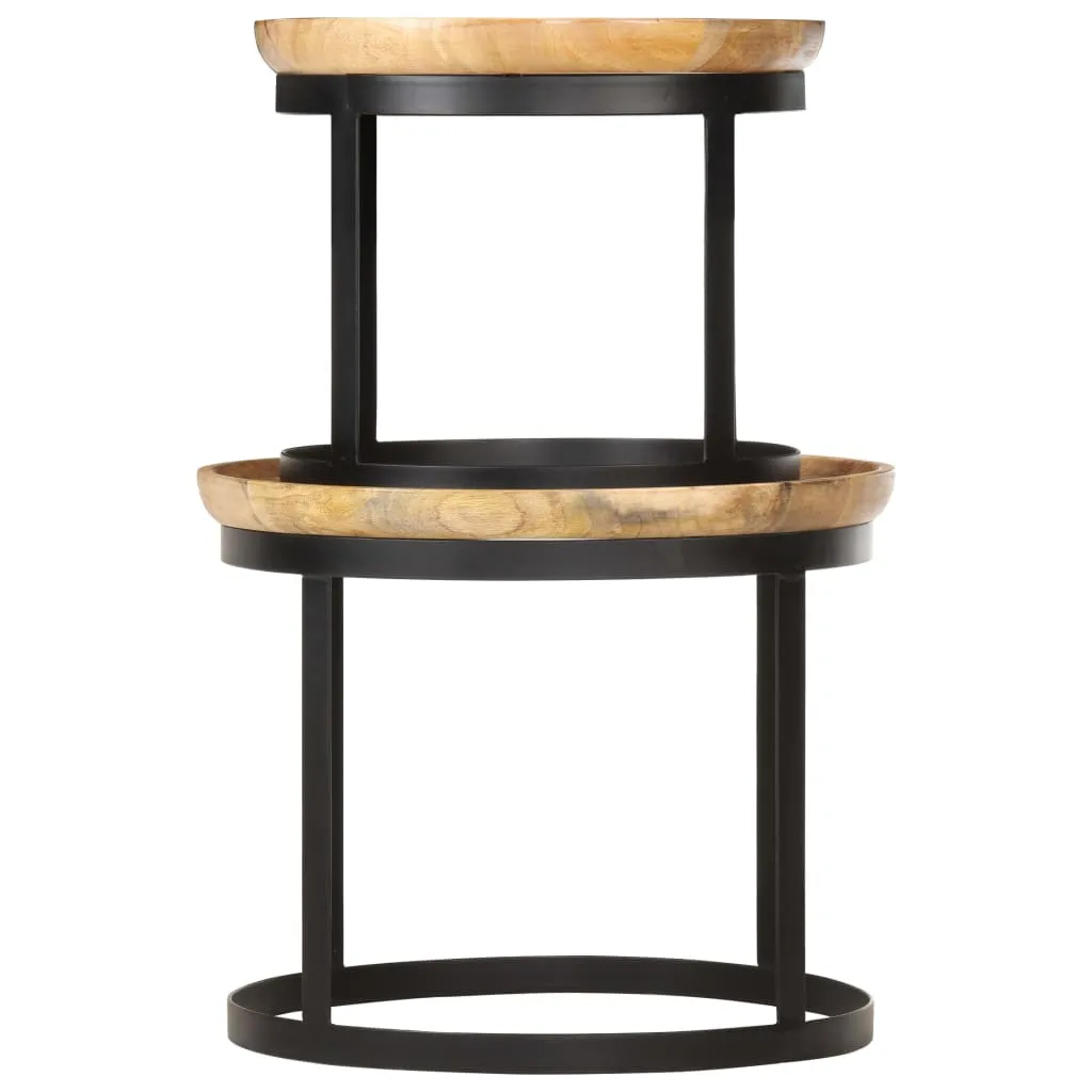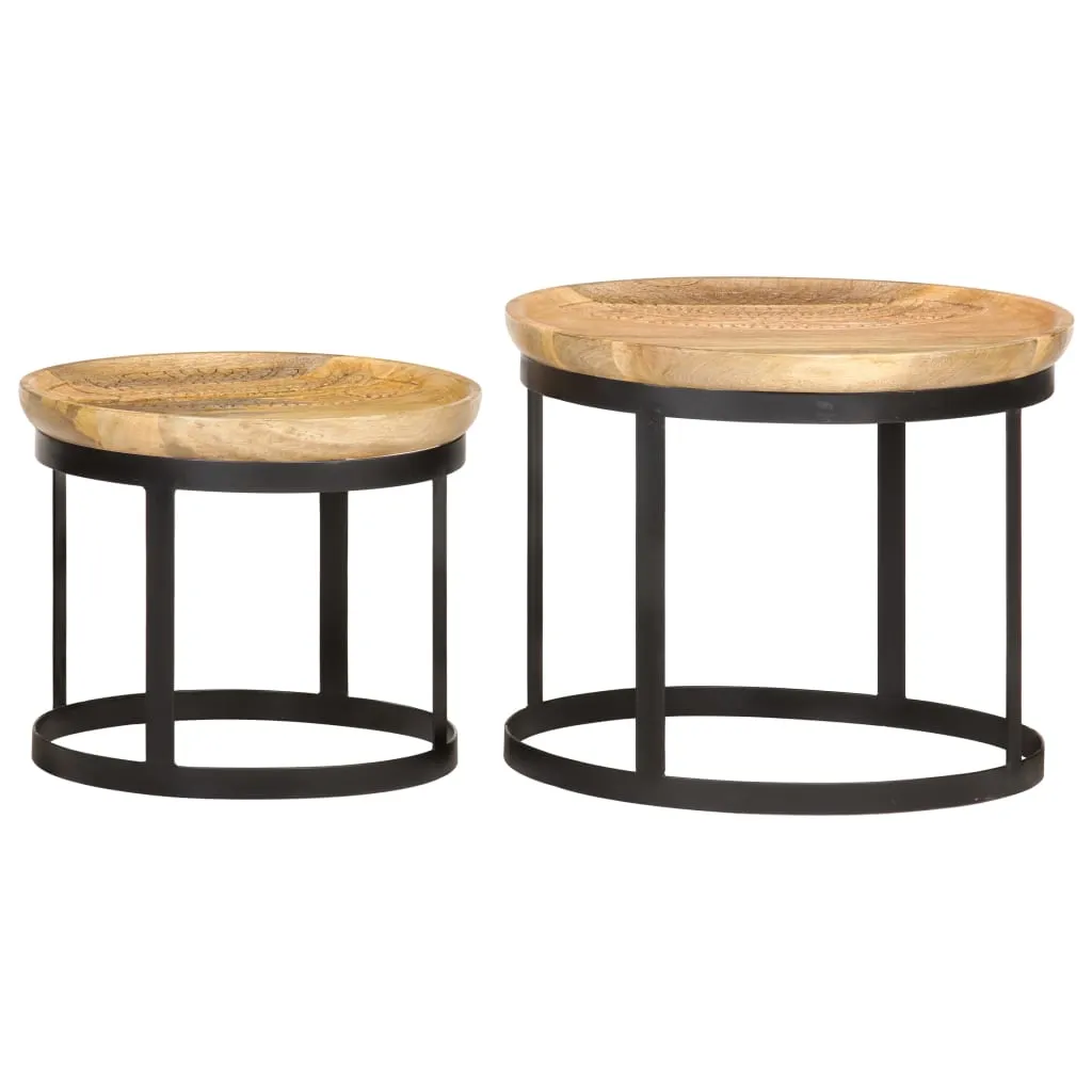 Runde Beistelltische 2 Stk. Mango Massivholz und Stahl