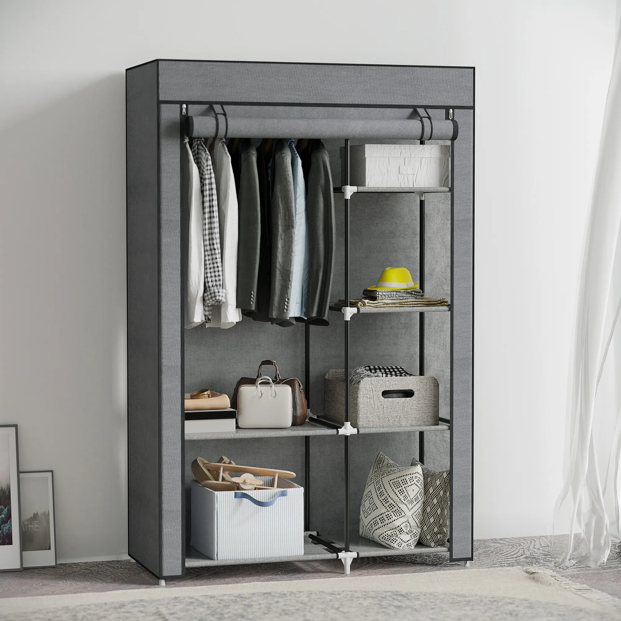 Schrank aus Stoff, Aufbewahrungslösung, 6 Regale, 1 Kleiderstange, Dunkelgrau