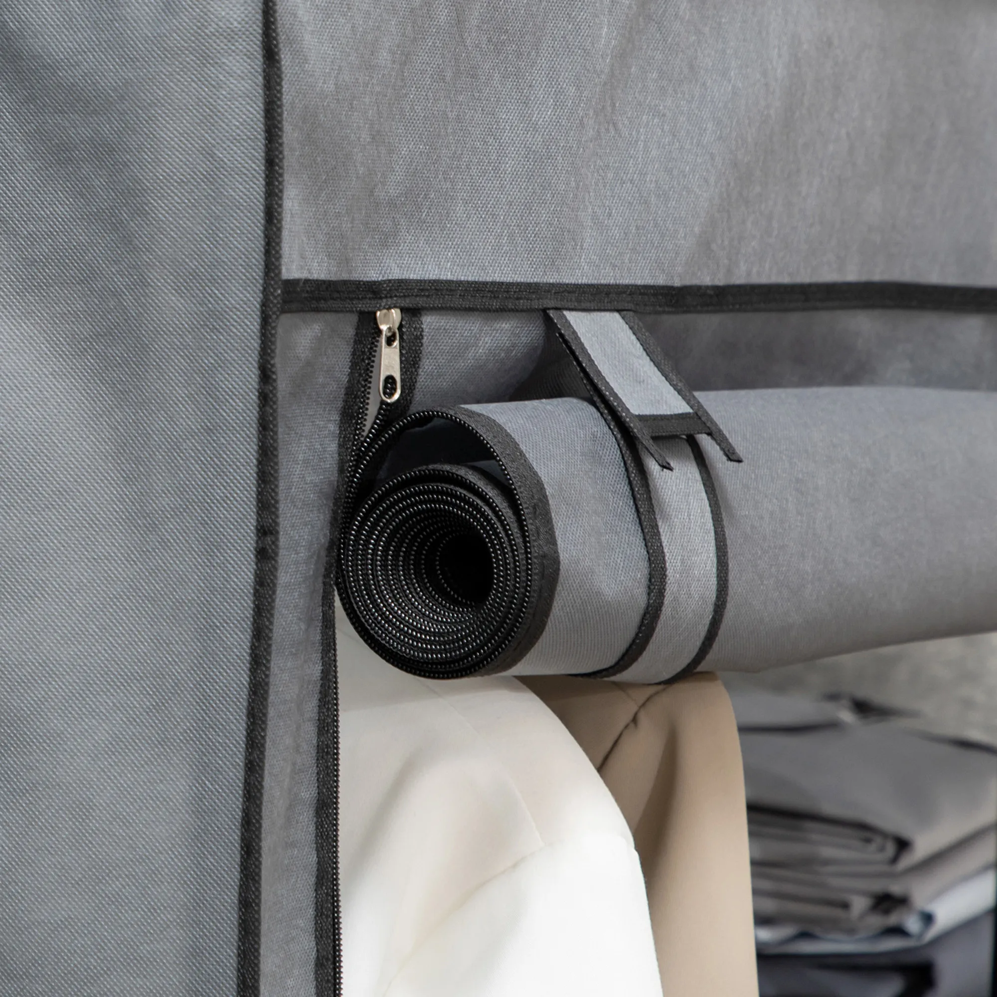 Dieser Stoffschrank von sorgt für Ordnung in Ihrem Zuhause. Dank seines vielseitigen Designs ist dieser Schrank ideal für jeden Raum, der zusätzlichen Stauraum benötigt. Er verfügt über 1 Kleiderstange und 6 Einlegeböden zum Ordnen und Aufbewahren von Kleidung, Handtüchern, Bettwäsche oder Taschen. Der Stoffbezug schützt Ihre Sachen perfekt vor Staub - die ideale Organisationslösung!