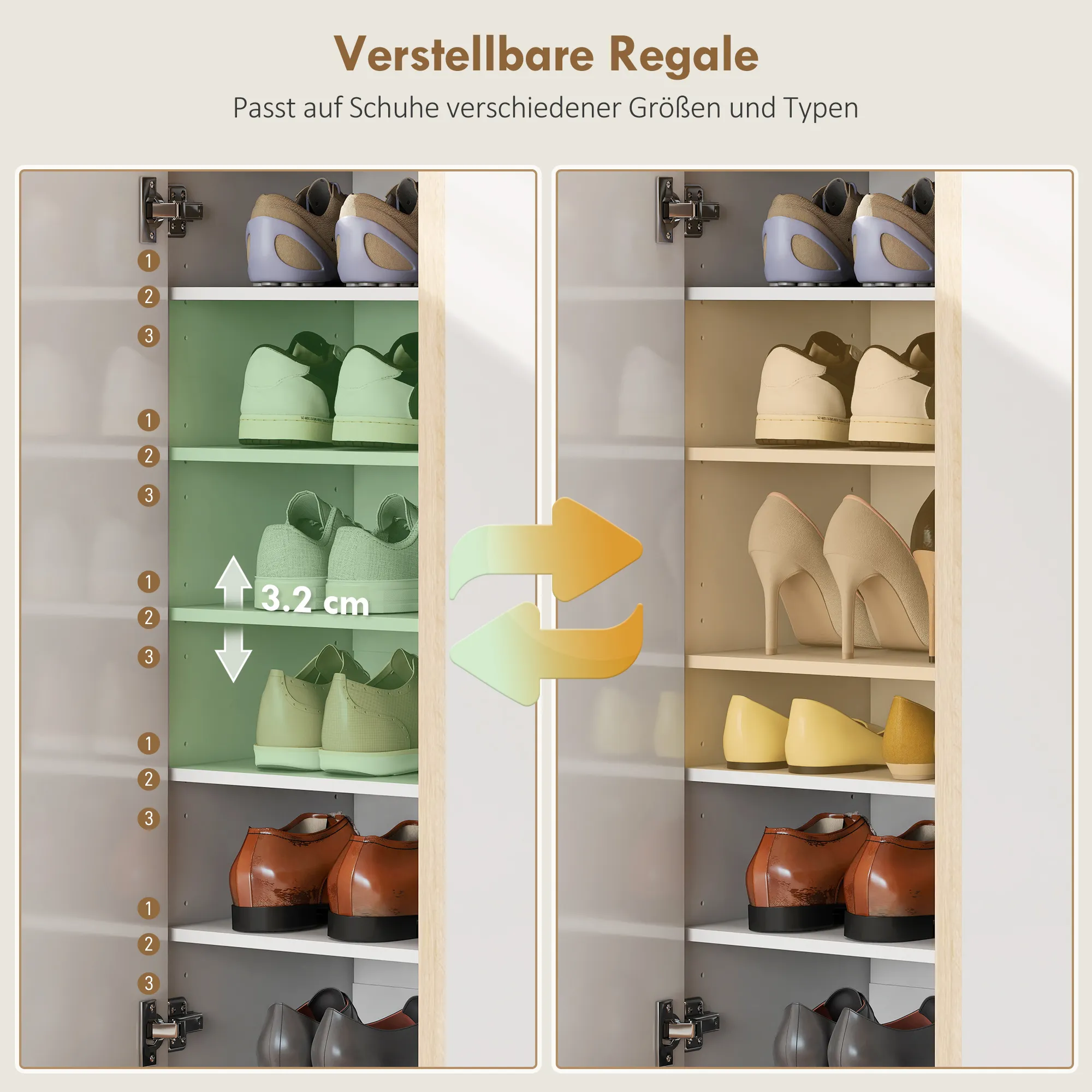 - Modernes Design des Schuhschranks in Weiß und Holzfarbe ergänzt jeden Wohnstil