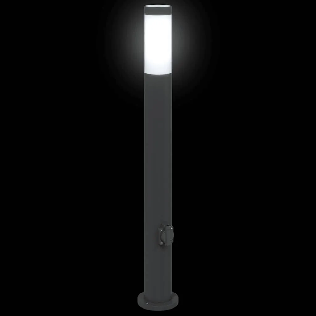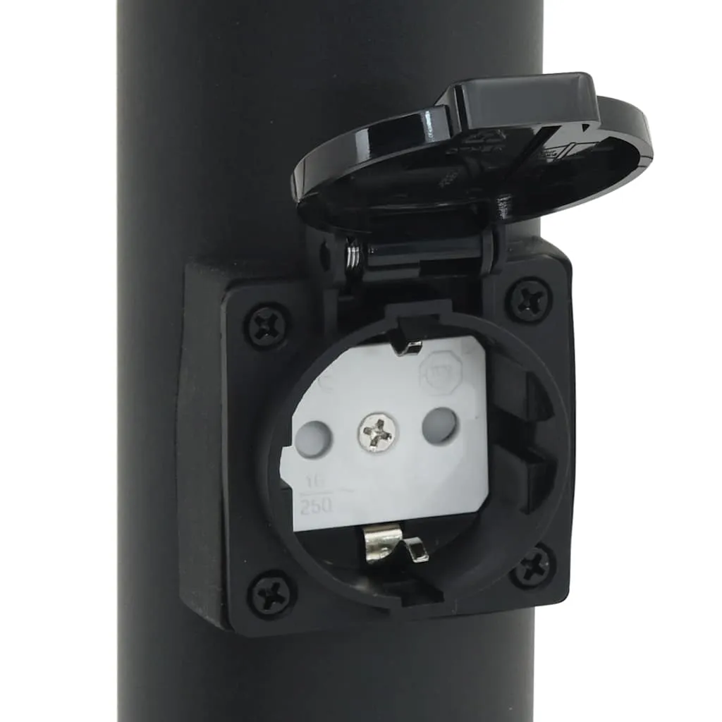 Schwarze Edelstahl Pollerleuchte 11x80 cm mit integrierter Steckdose