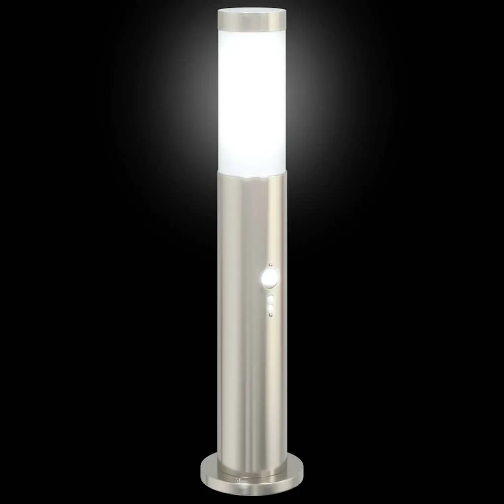 Silberne Außenstehleuchte aus Edelstahl 11x50 cm mit Bewegungssensor