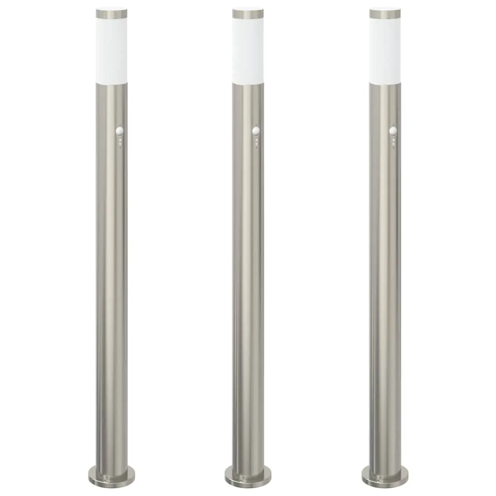 Silberne Edelstahl Pollerleuchte 11x110 cm mit Bewegungssensor IP44