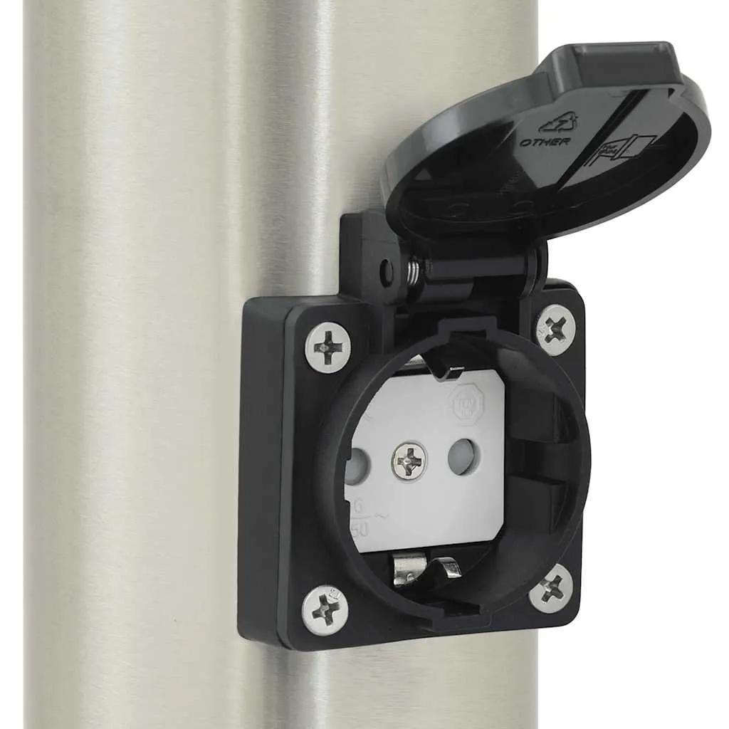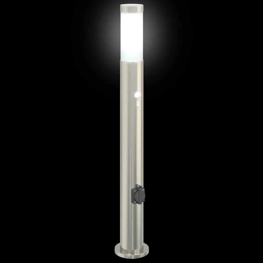 Silberne Edelstahl Pollerleuchte 11x80 cm mit Bewegungssensor und Steckdose