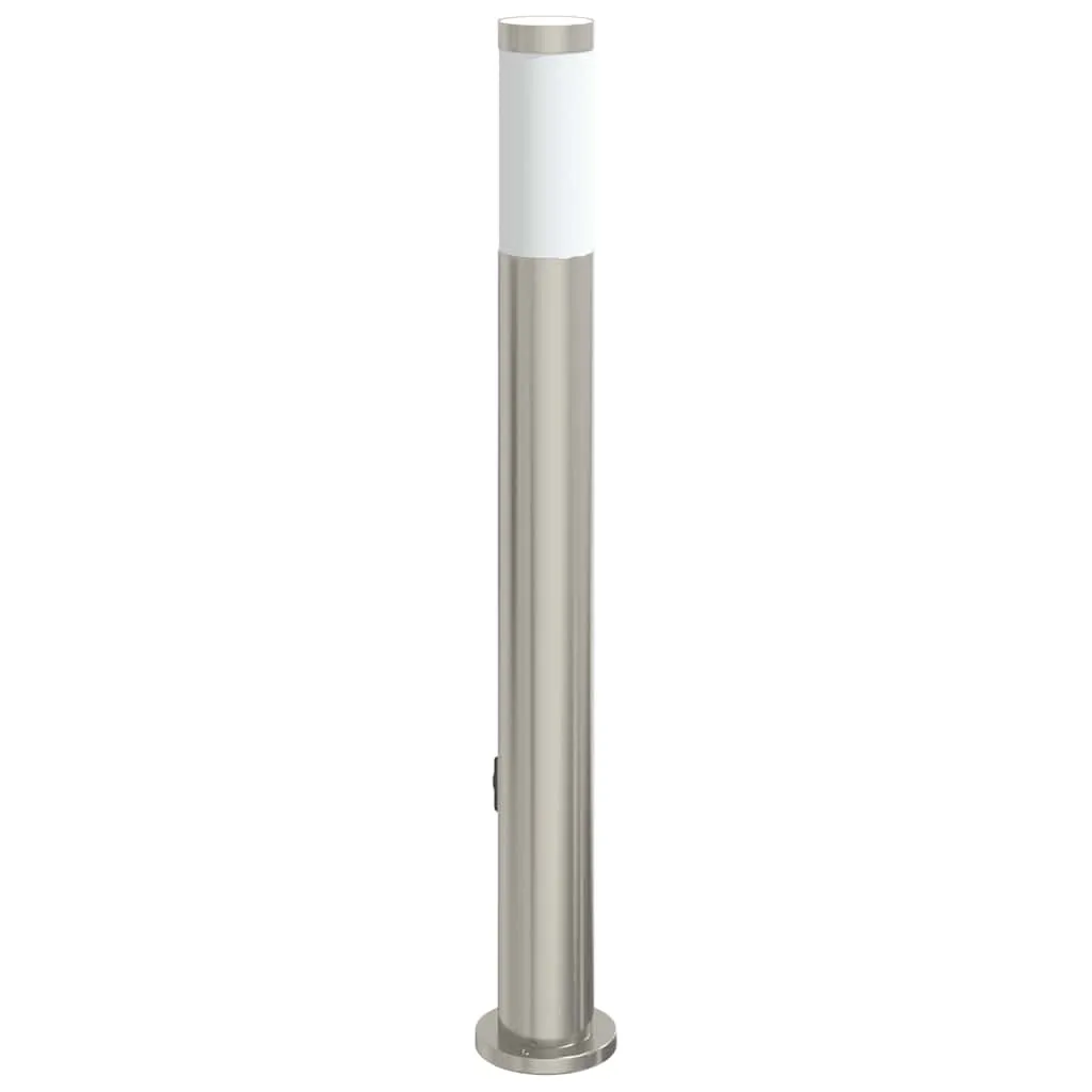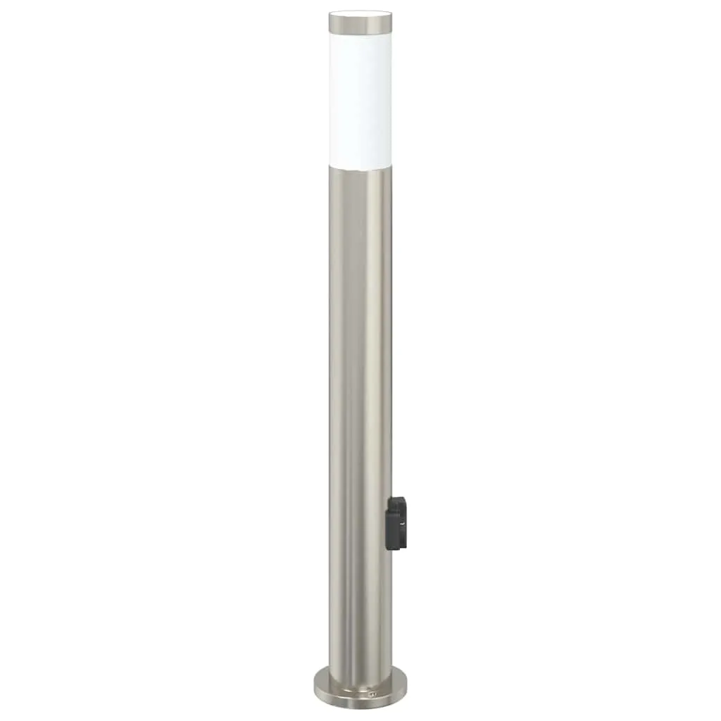 Silberne Pollerleuchte aus Edelstahl 11x80 cm mit integrierter Steckdose