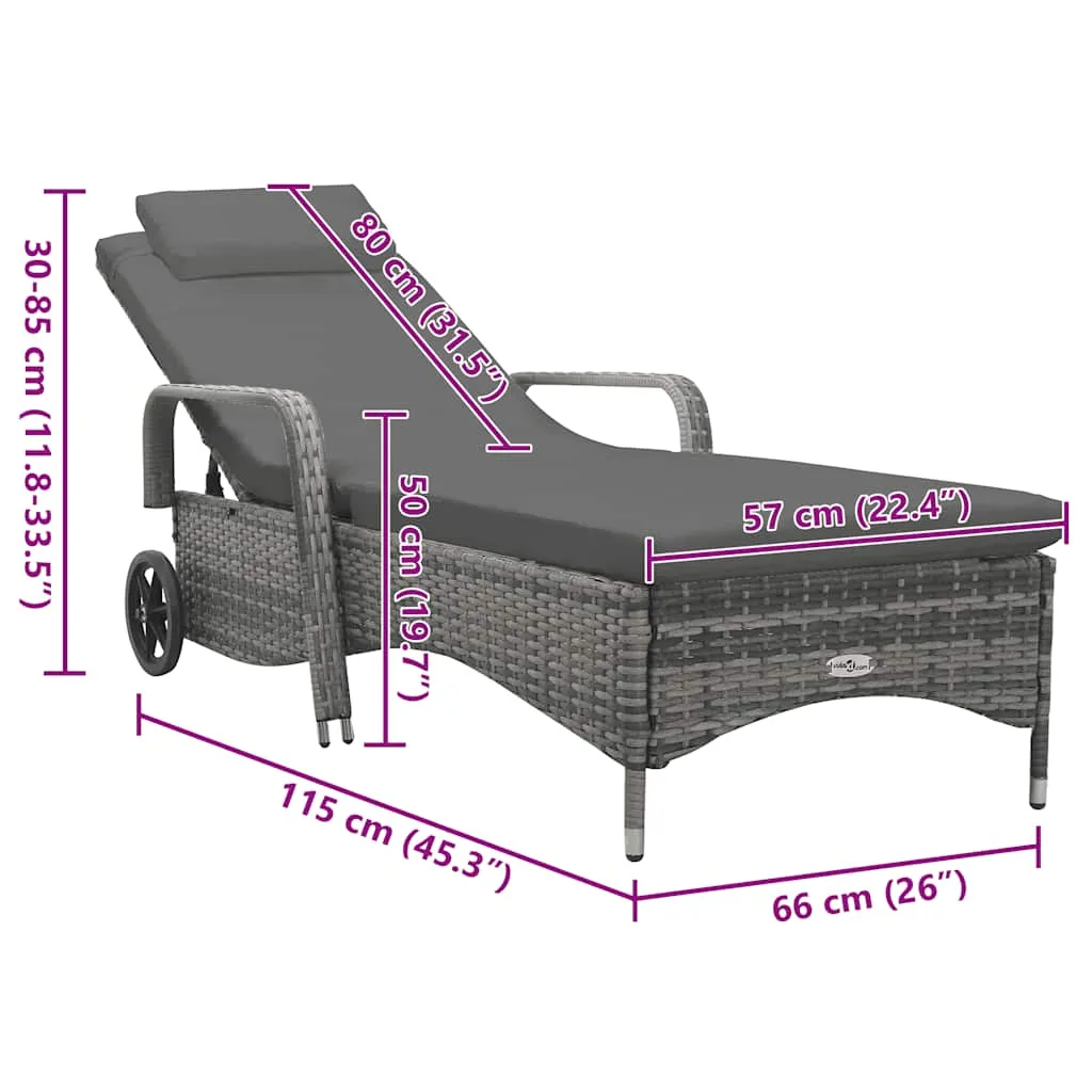 Sonnenliege mit Rädern Poly Rattan Anthrazit