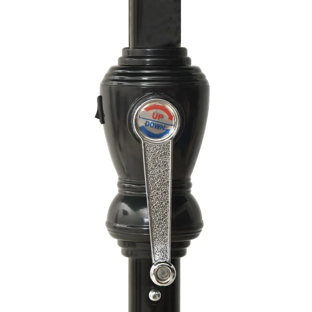 Dieser Sonnenschirm ist die perfekte Wahl, um im Garten oder auf der Terrasse etwas Schatten zu spenden und Schutz vor schädlichen UV-Sonnenstrahlen zu bieten. Hergestellt aus UV-beständigem und farbechtem Polyester, bietet der Balkonschirm optimalen Schutz vor der Sonne. Die pulverbeschichtete Aluminiumstange und die Schirmrippen sorgen zusätzlich für Stabilität. Dank der Kurbel und der Kippfunktion ist der Schirm faltbar und tragbar. Er kann auf einem Sonnenschirmständer oder in der Mitte von Tischen mit Schirmloch befestigt werden. Die integrierten LEDs, die über ein Solarmodul aufgeladen werden, schaffen abends ein gemütliches und romantisches Ambiente.