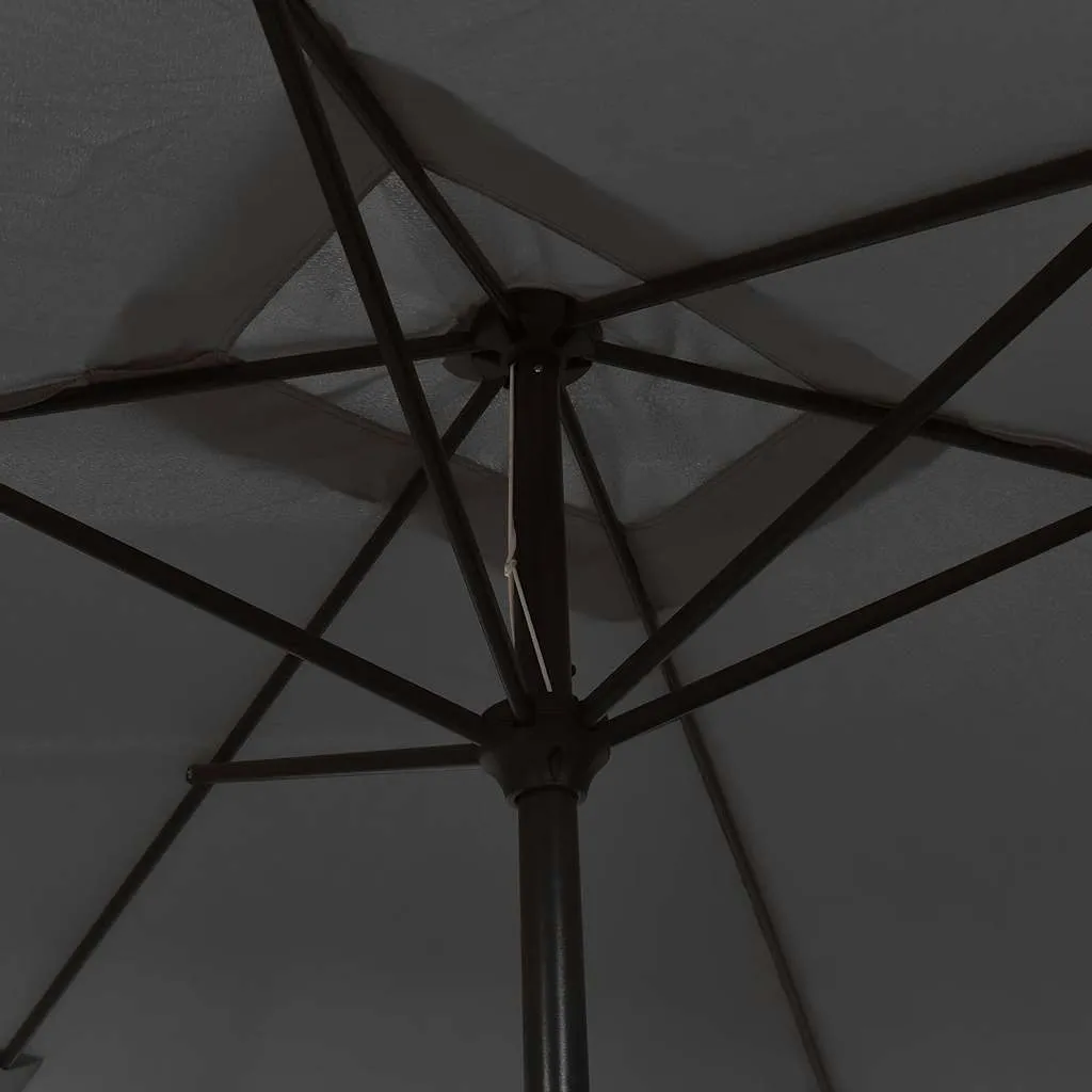 Dieser elegante Gartenschirm schafft nicht nur ein schattiges Plätzchen im Garten oder auf der Terrasse, sondern bietet auch Schutz gegen schädliche UV-Strahlen. Aus UV-beständigem und verblassfestem Polyester gefertigt, bietet dieser Sonnenschirm optimalen Schutz vor schädlichen Sonnenstrahlen und ist leicht zu reinigen. Mit einem Mastdurchmesser von 38 mm kann er auf dem Standfuß oder in der Mitte der mit Löchern versehenen Tische montiert werden. Das exklusive Design ermöglicht es Ihnen, den Sonnenschirm zu kippen, damit Sie sich vor der Sonne am Horizont schützen können. Der starke Metallmast und die 6 robusten Schirmrippen verleihen dem Ampelschirm Stabilität und Langlebigkeit. Unser Sonnenschirm lässt sich dank des Kurbelmechanismus einfach öffnen und schließen. Der Artikel ist leicht zu montieren. Bitte beachten: Wir empfehlen, die Schirmbespannung mit einem Imprägnierspray zu behandeln, wenn es starken Regenfällen ausgesetzt ist.
