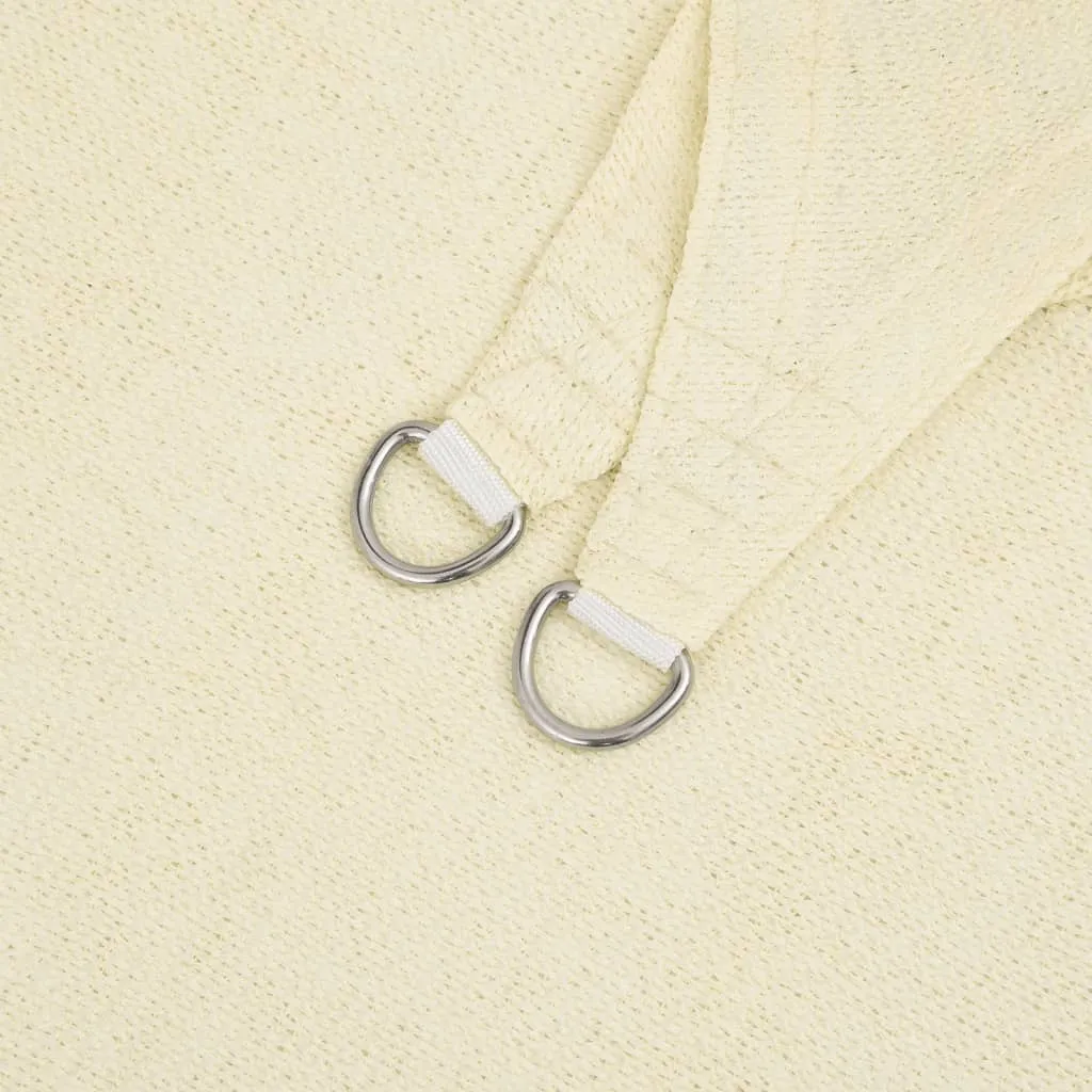 Schaffen Sie sich einen kleinen Schutz vor der Sonne, wo immer Sie möchten, mit diesem HDPE-Sonnensegel. Es ist das ideale Sonnensegel, das in jedem Außenbereich wie Garten, Terrasse, Spielplatz oder Balkon verwendet werden kann. Das Sonnensegel aus 100% HDPE (hochdichtes Polyethylen) schützt Sie vor direkter Sonneneinstrahlung, lässt genügend Wind durch und ist wasserpermeabel. Das HDPE ist speziell behandelt, sodass es schimmel- und UV-beständig ist. Das Sonnensegel ist einfach mit den Edelstahlschrauben an jeder Ecke und den mitgelieferten Seilen zu montieren. Gut zu wissen: Für die richtige Nutzung benötigt dieses Produkt passende Haken (nicht enthalten). Um die korrekte Passform zu gewährleisten, beachten Sie bitte die Gesamtlänge von Haken und Produkt beim Kauf.