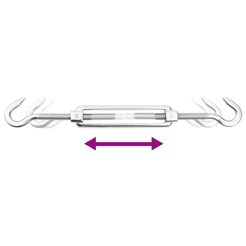 Die robusten Ösen mit den Maßen 80 x 50 mm lassen sich sicher an stabilen Wänden befestigen. Mithilfe der praktischen Karabinerhaken mit einer Länge von 80 mm kann das Sonnensegel schnell und unkompliziert angebracht oder entfernt werden. Der verstellbare Spanner mit einer Länge von 190 bis 290 mm ermöglicht es, das Sonnensegel jederzeit straff zu ziehen oder zu lockern, um optimalen Halt und Spannung zu gewährleisten.