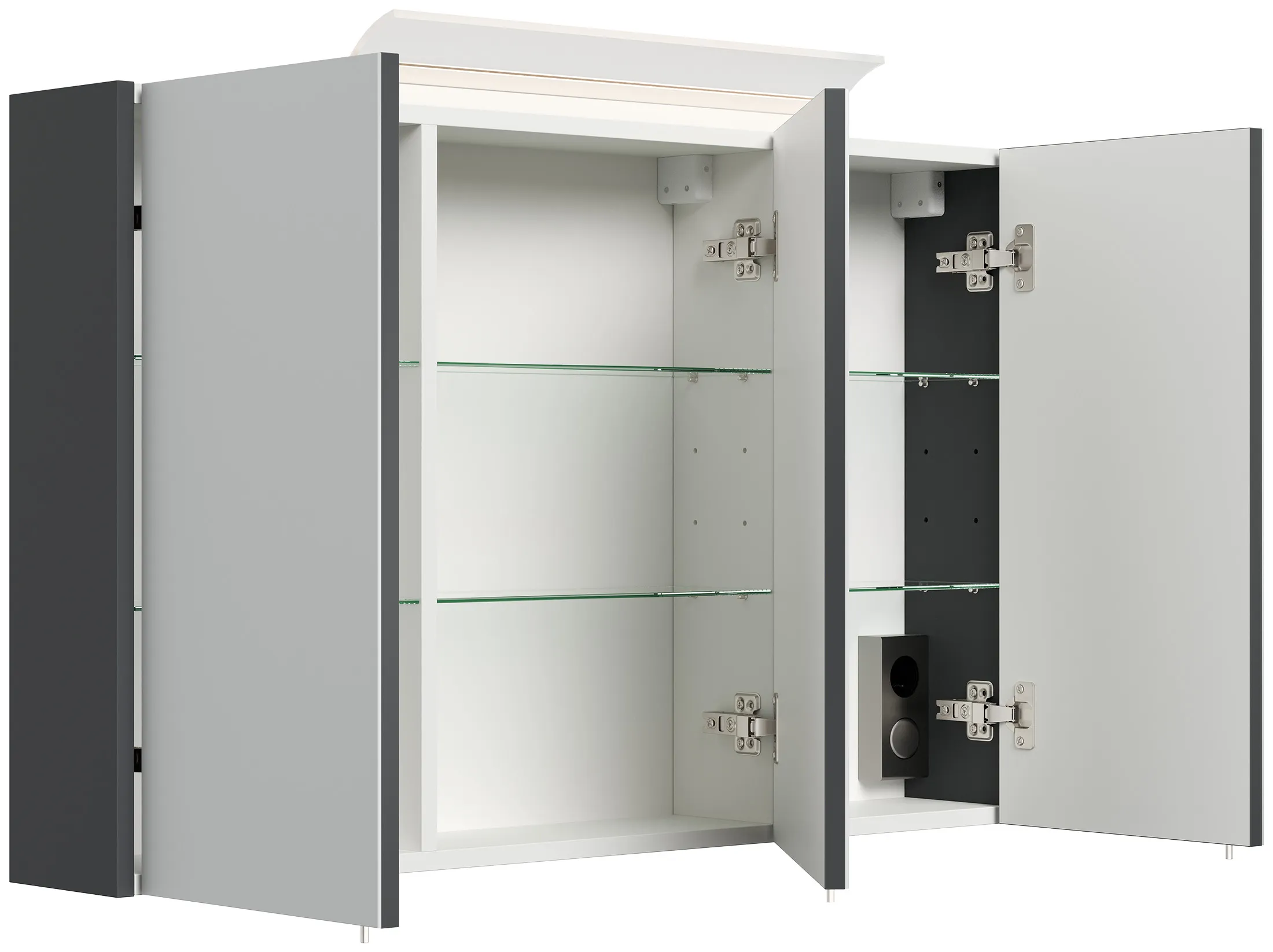 Spiegelschrank 100cm inkl. Design LED-Lampe und Glasböden grafit