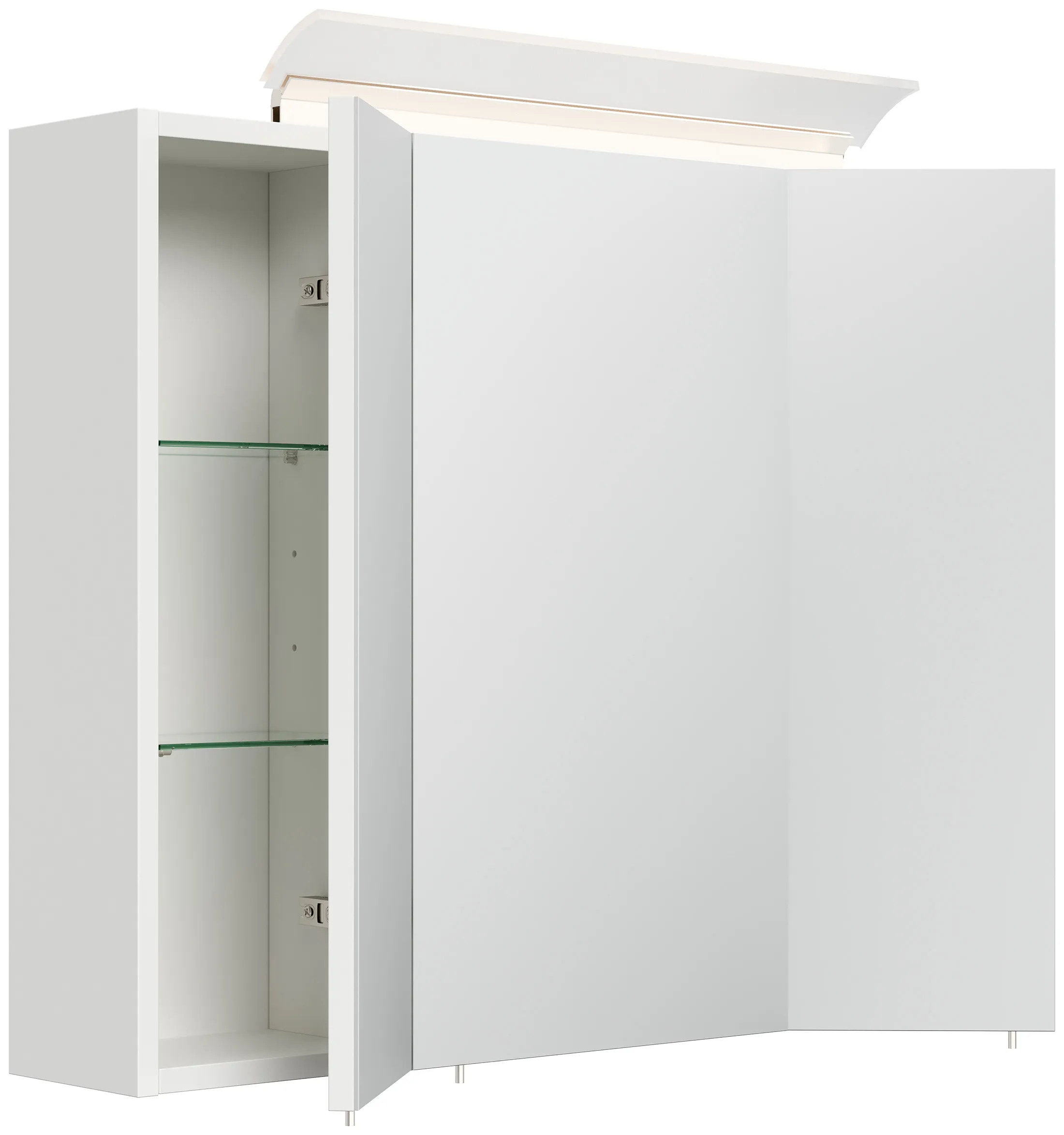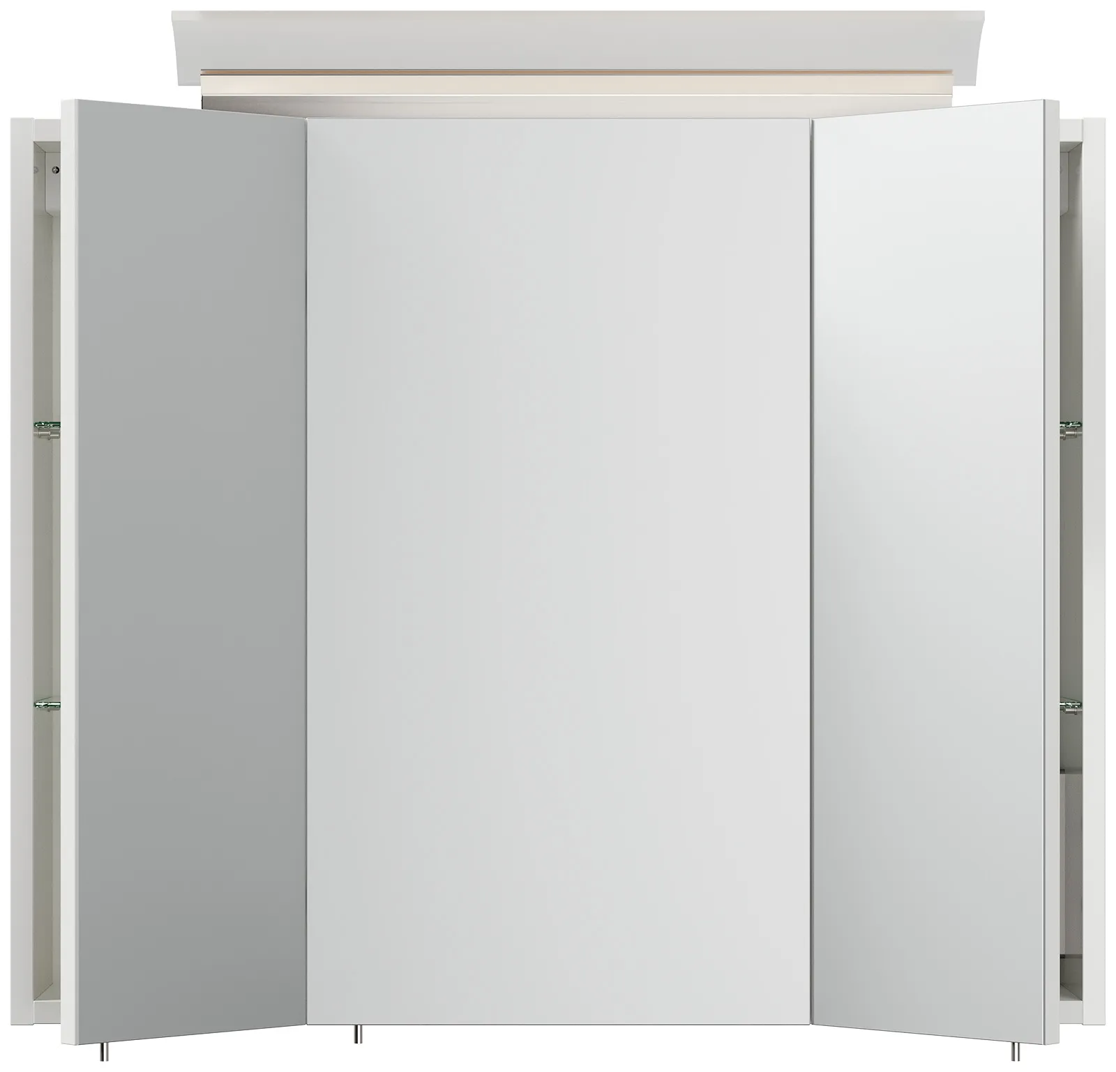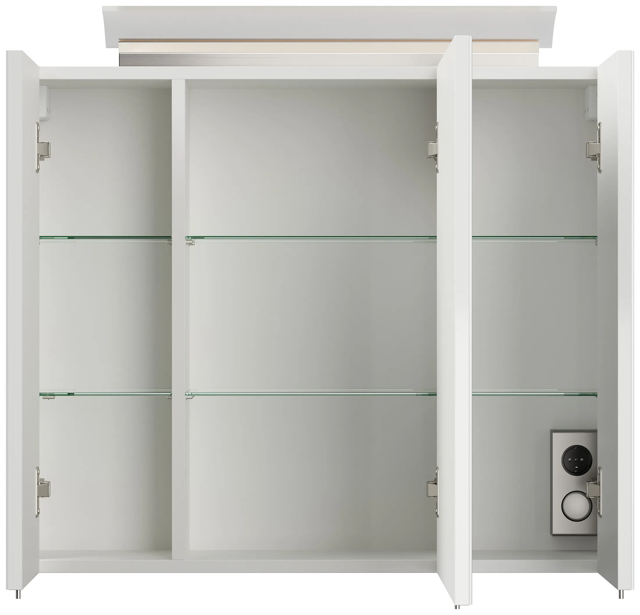 Spiegelschrank 75cm inkl. Design LED-Lampe und Glasböden weiss hochglanz
