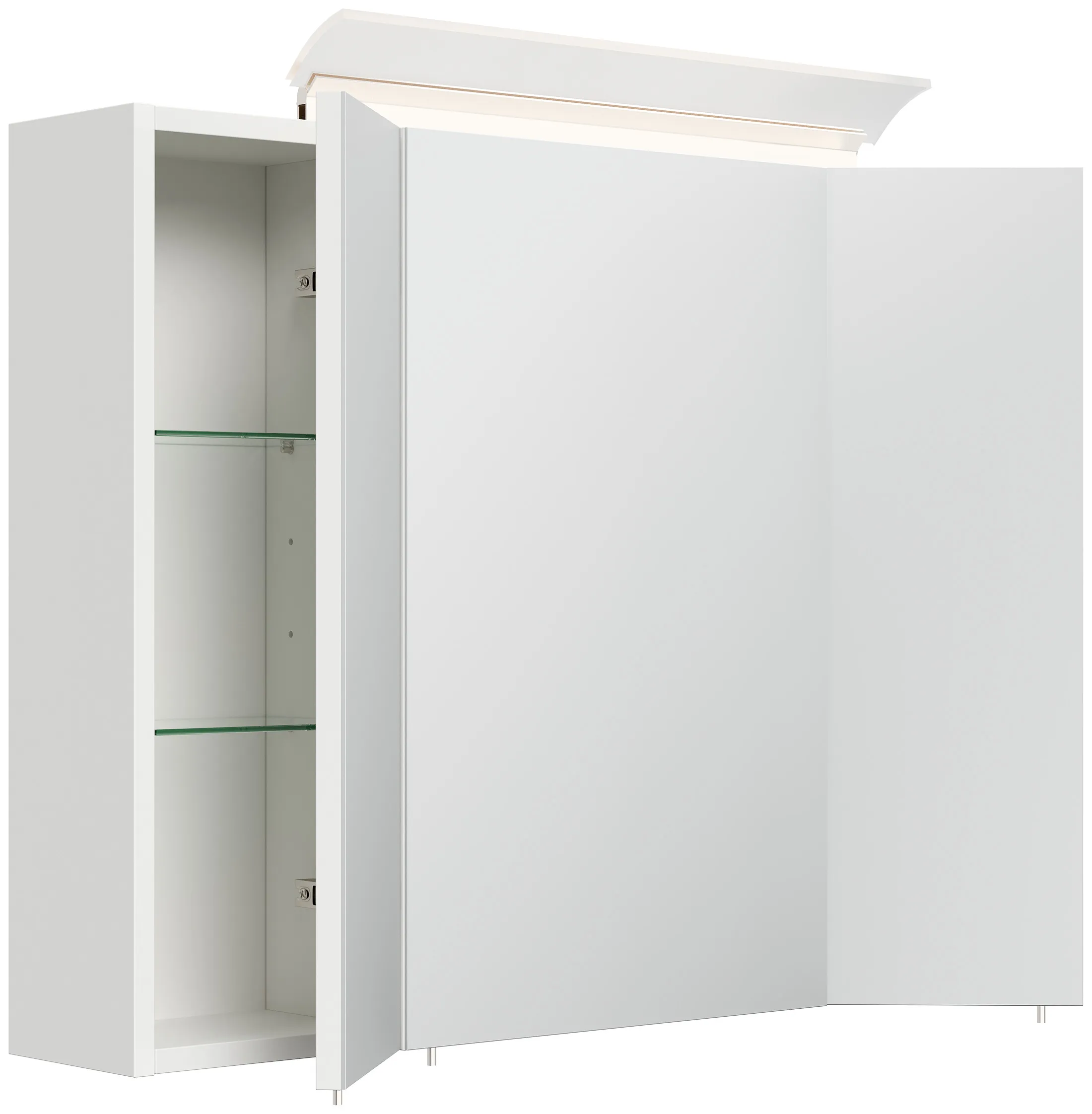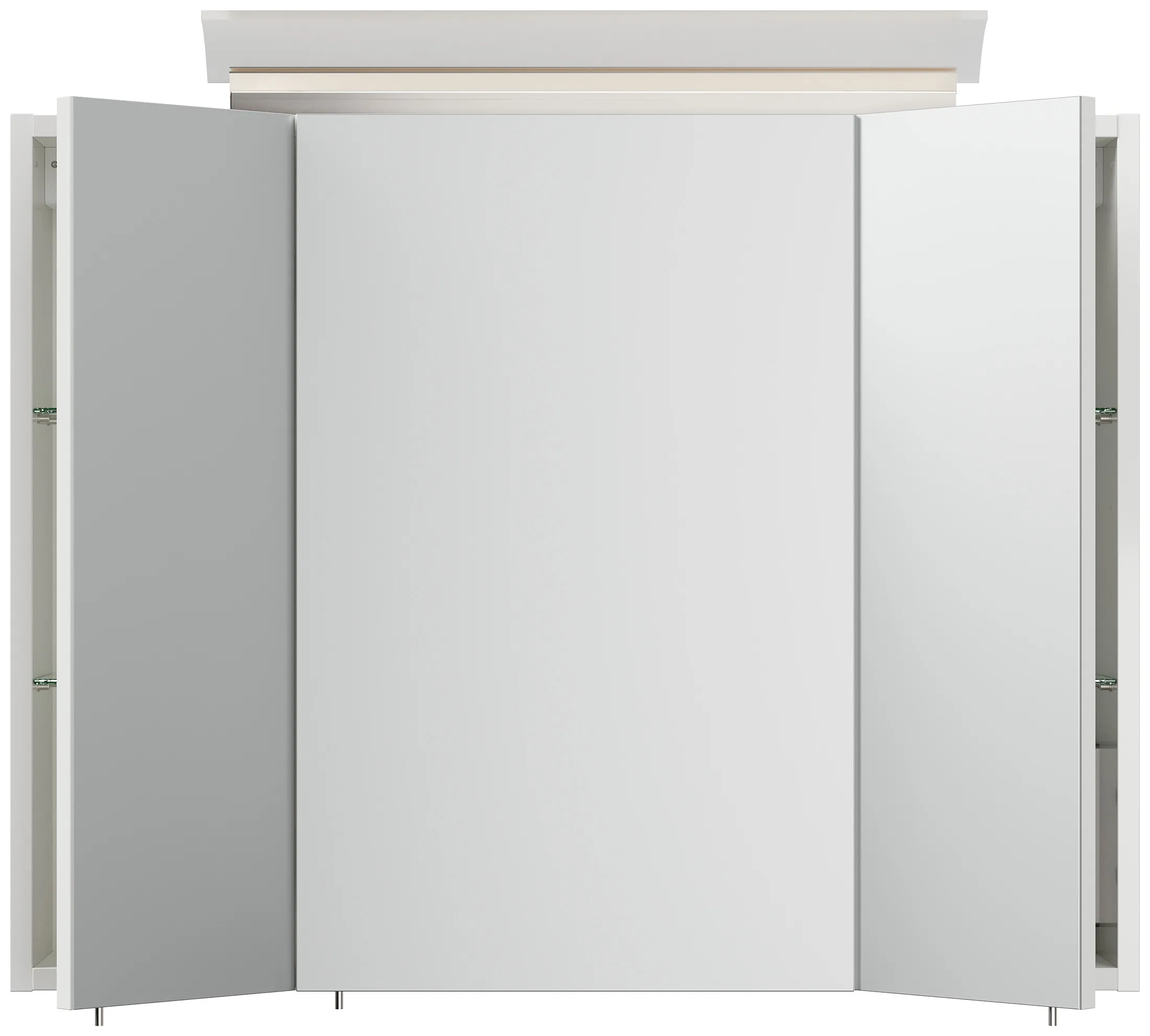 Spiegelschrank 80cm inkl. Design LED-Lampe und Glasböden weiss hochglanz