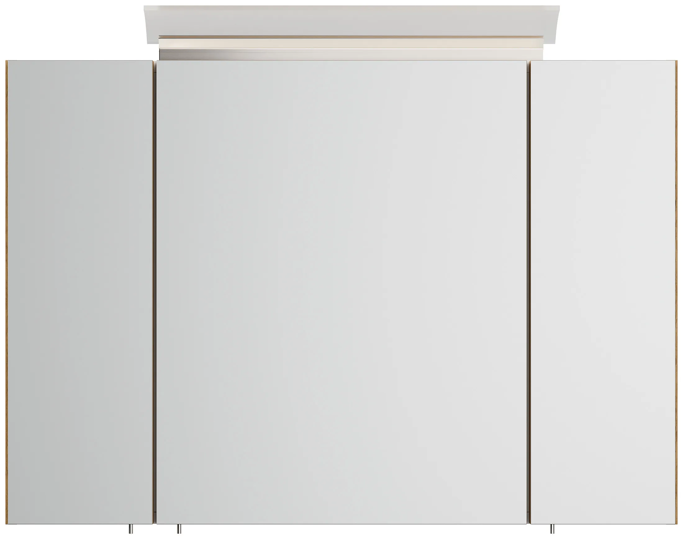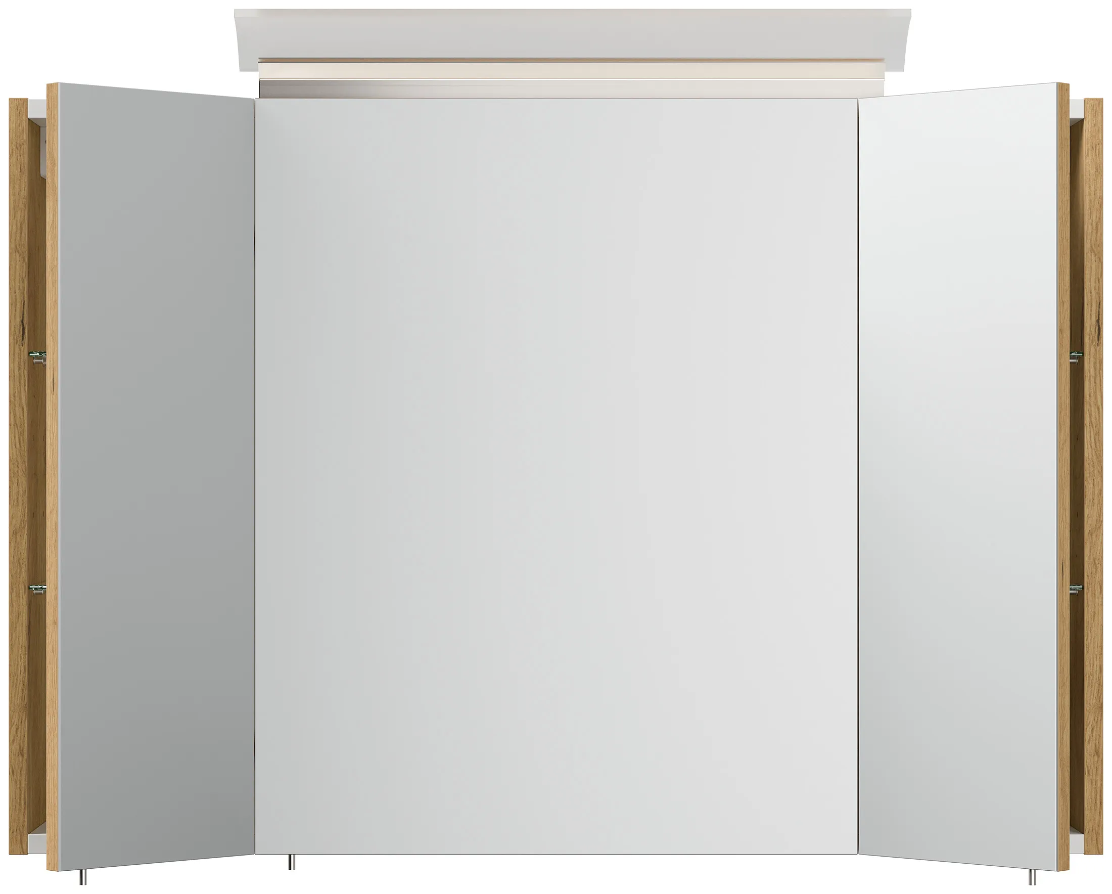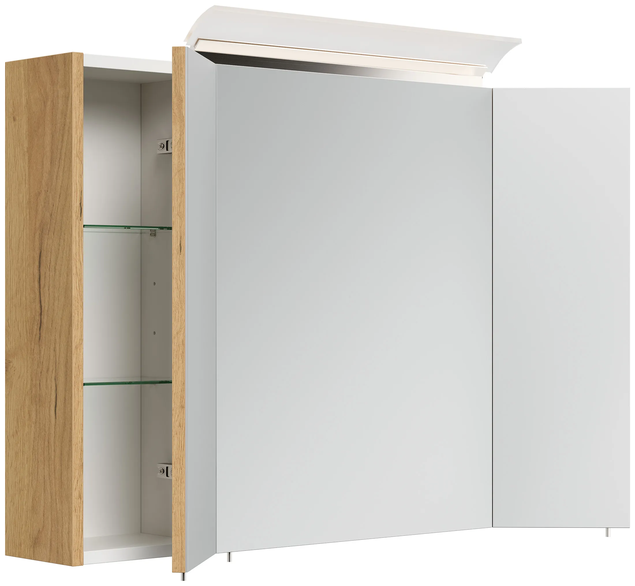 Spiegelschrank 90cm inkl. Design LED-Lampe und Glasböden eiche gold