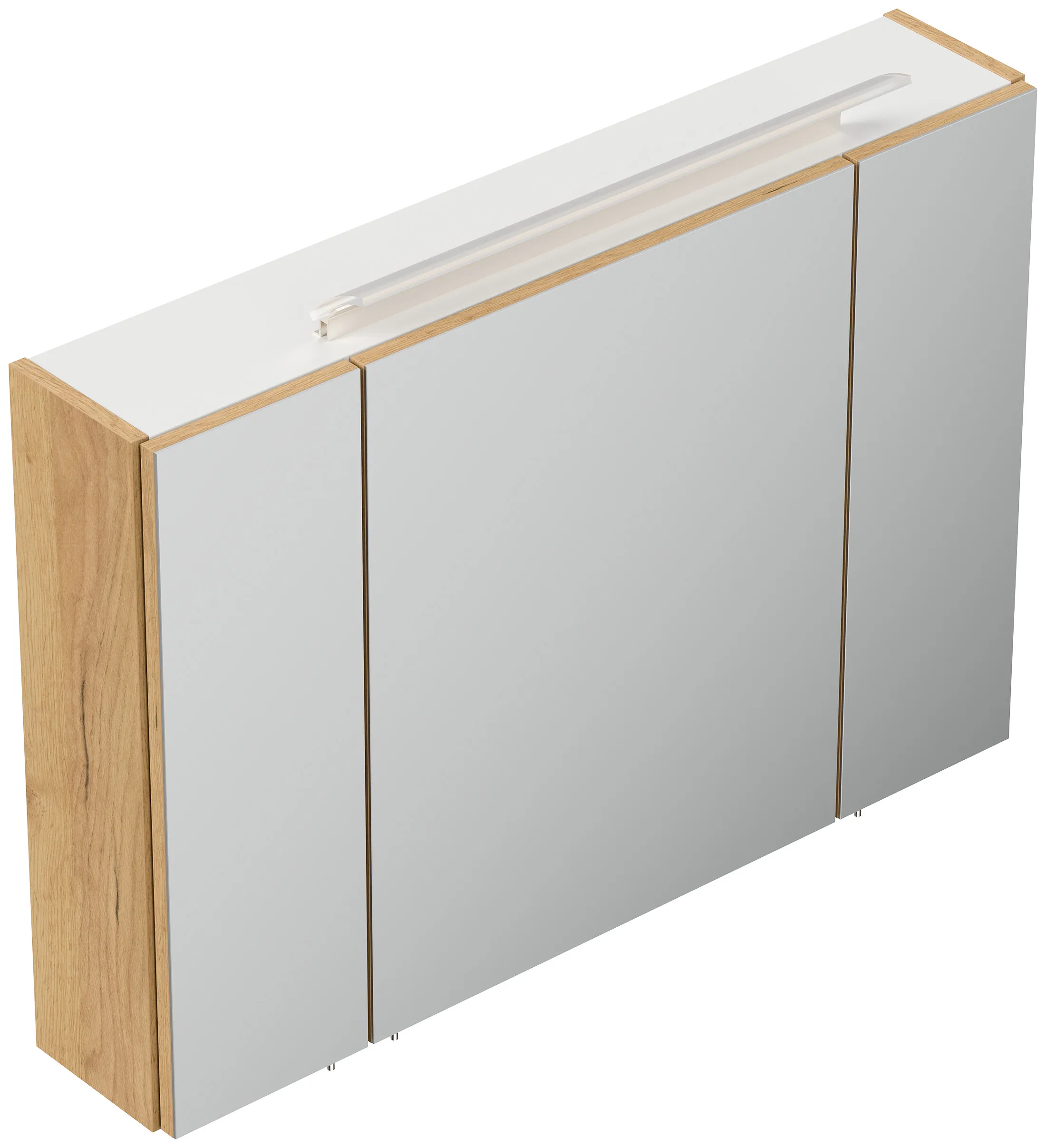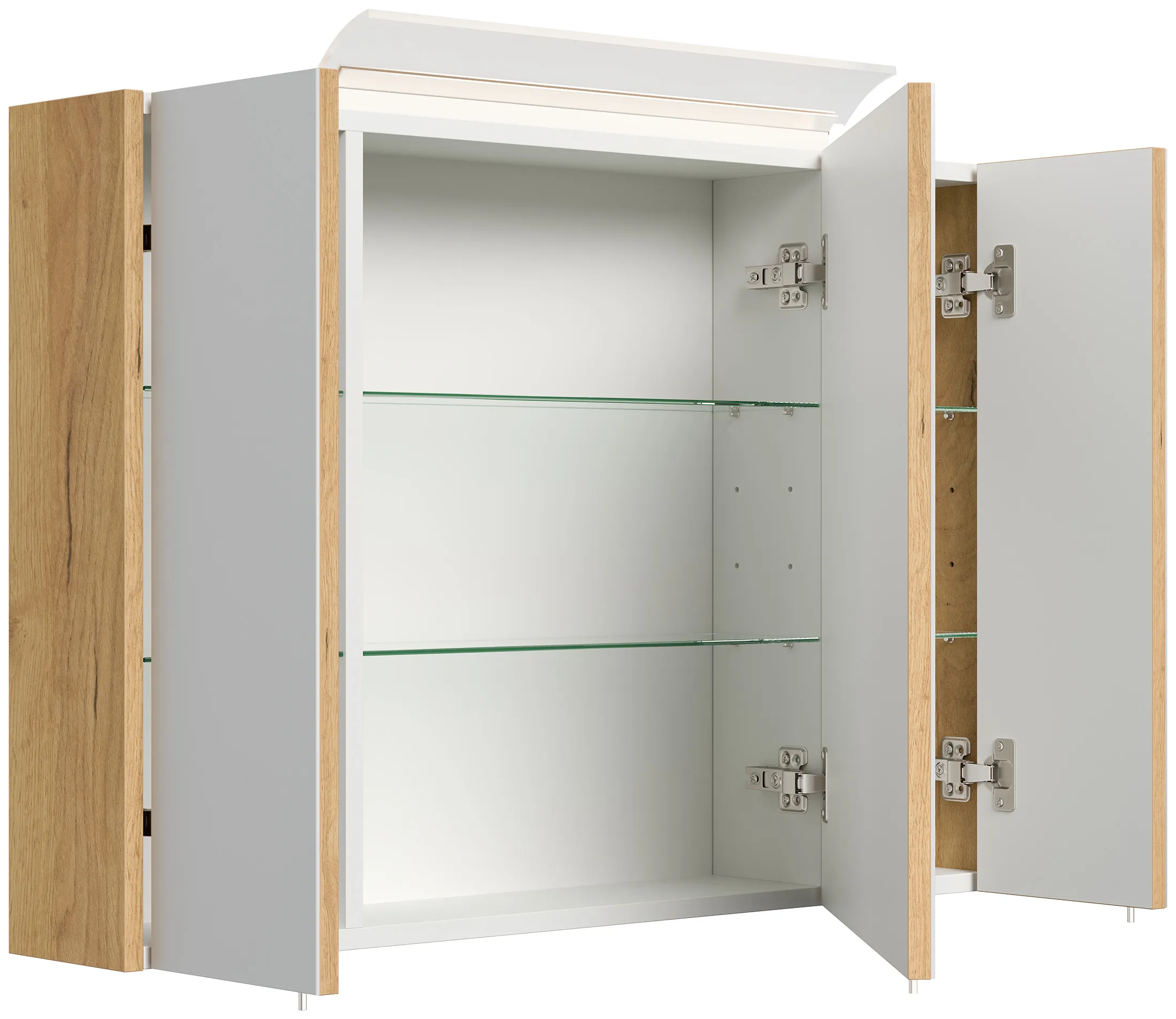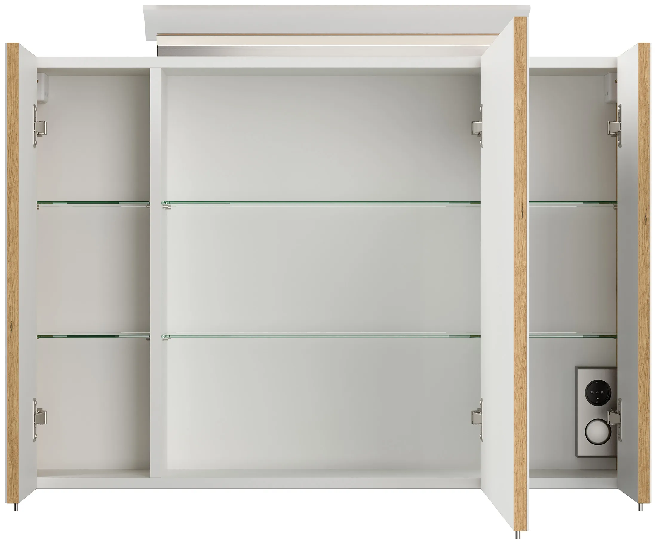 Spiegelschrank 90cm inkl. Design LED-Lampe und Glasböden eiche gold