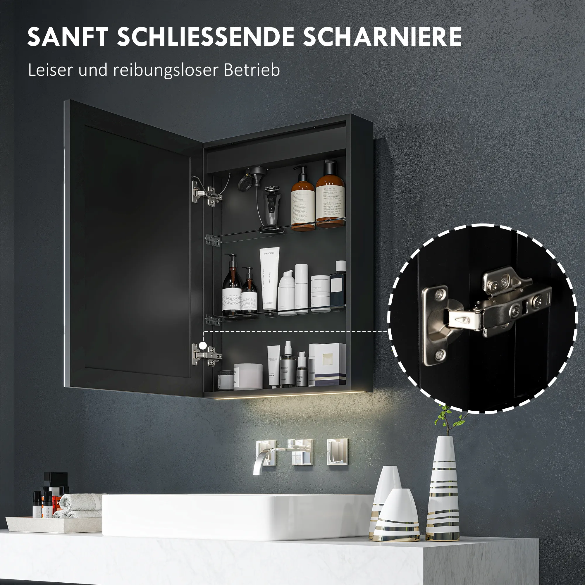 - Anti-Beschlag-Funktion des Wandschranks sorgt für klare Spiegelbilder