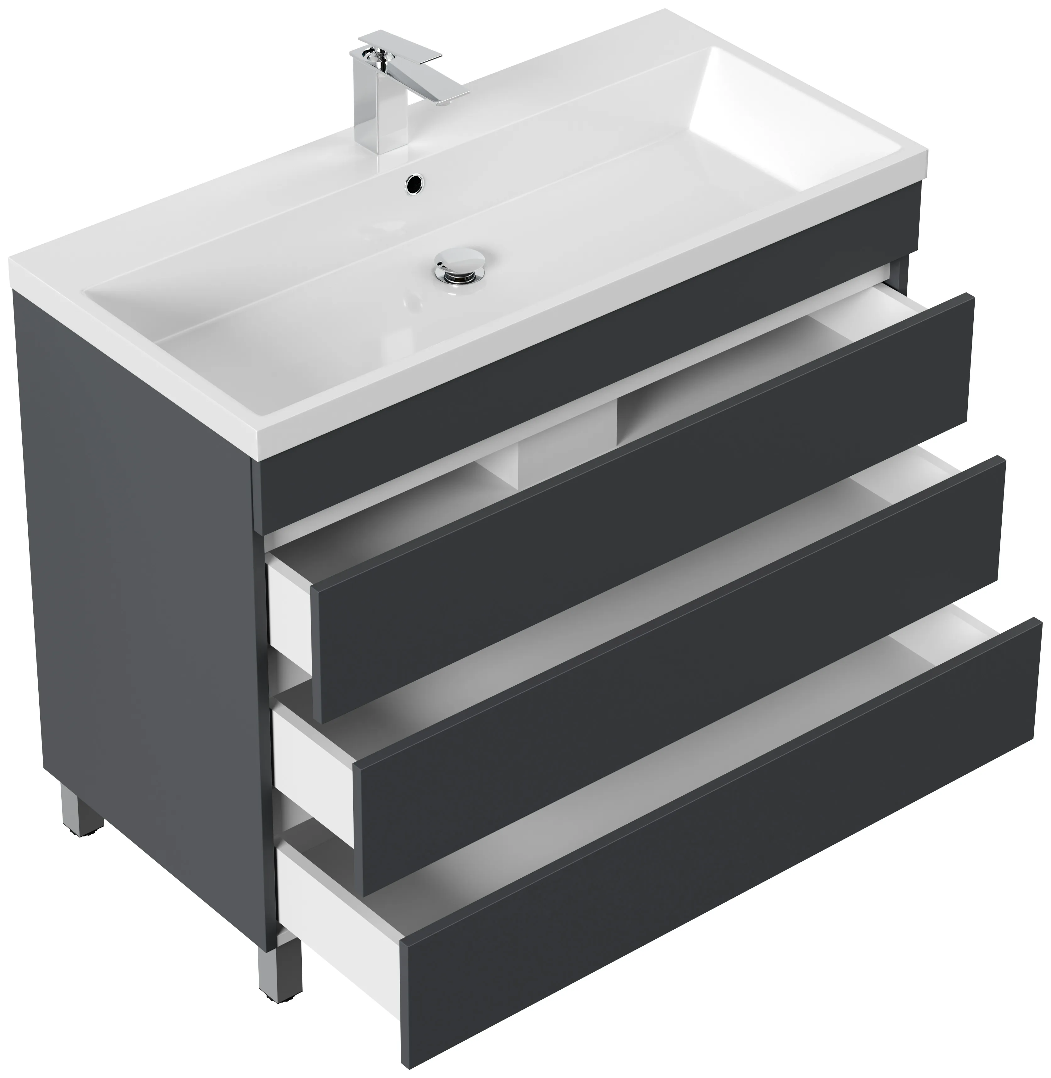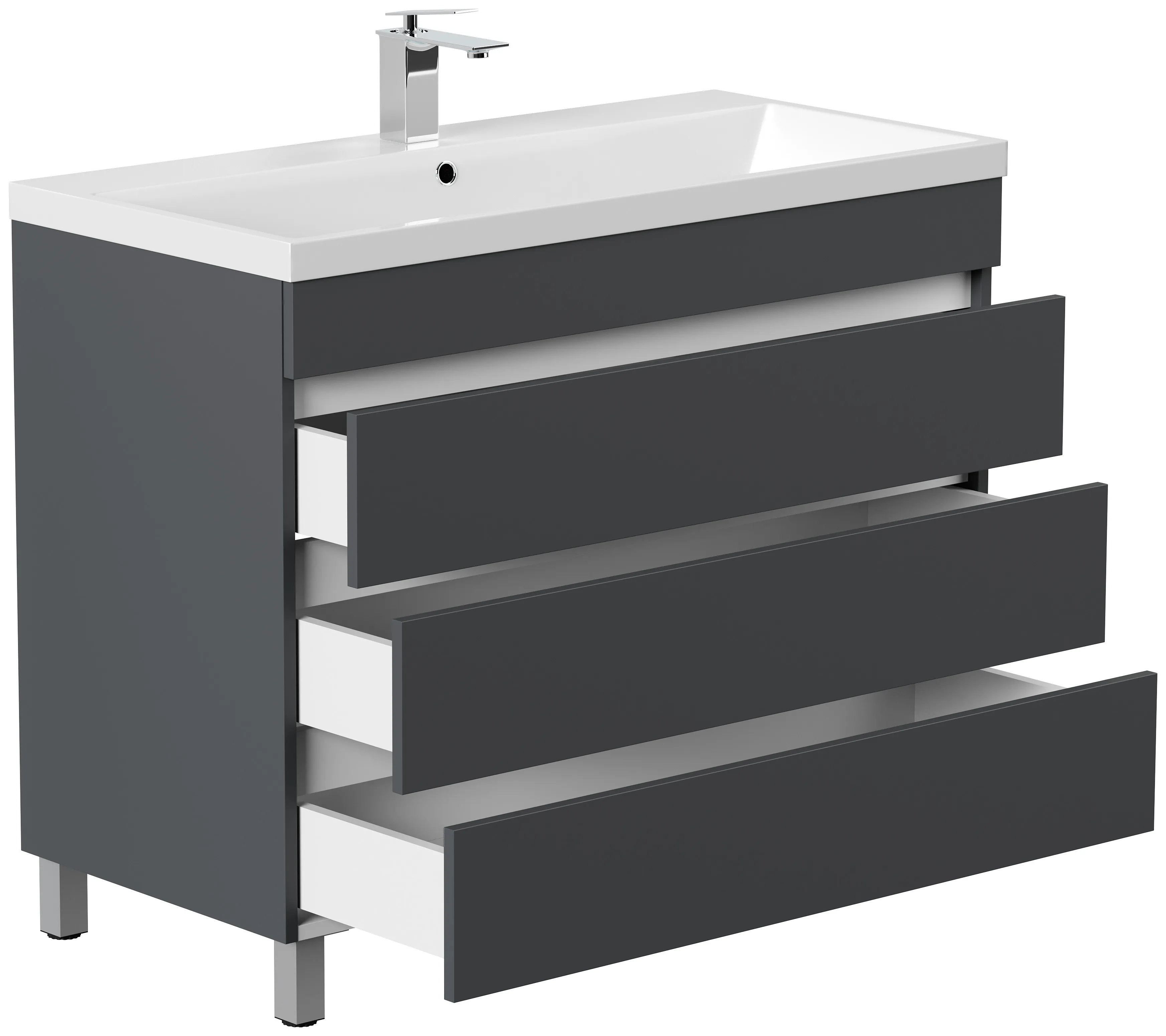 Stand Badmöbel Fellini 100 grafit mit drei grifflosen Schubladen