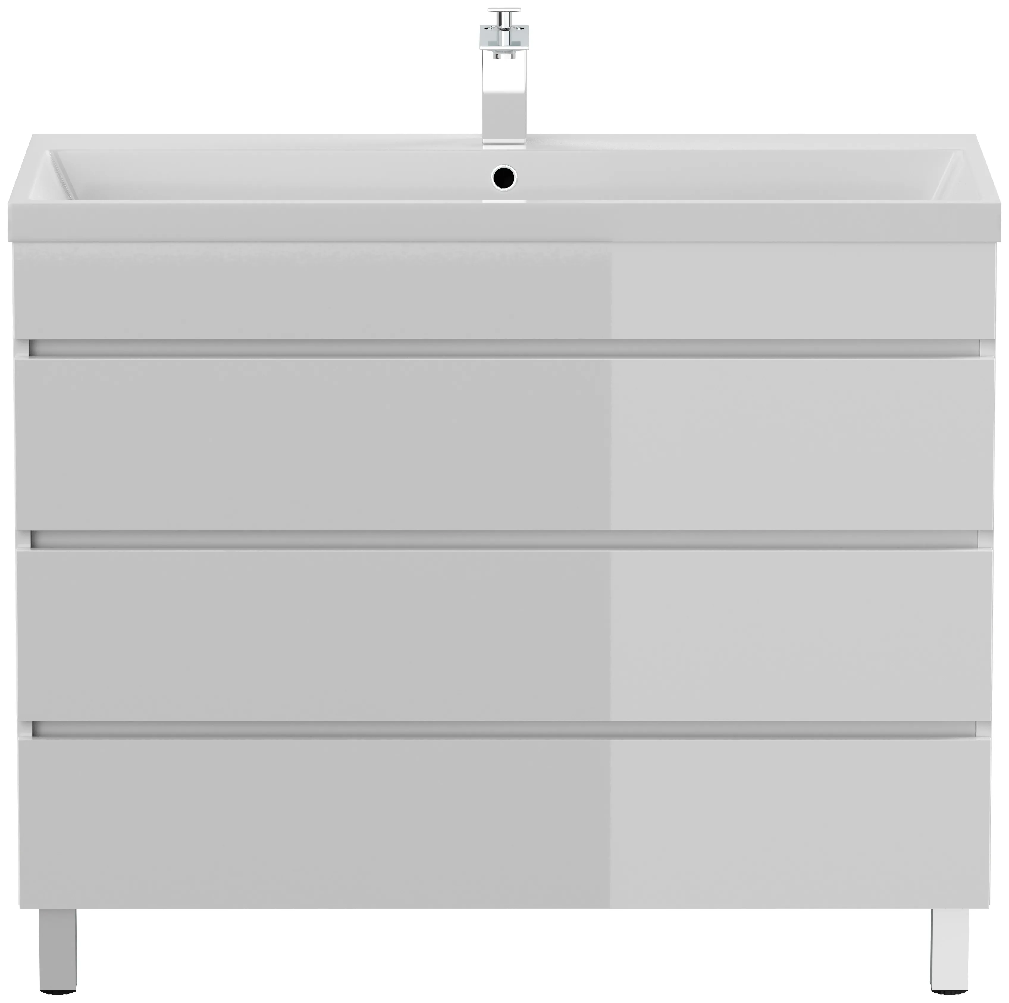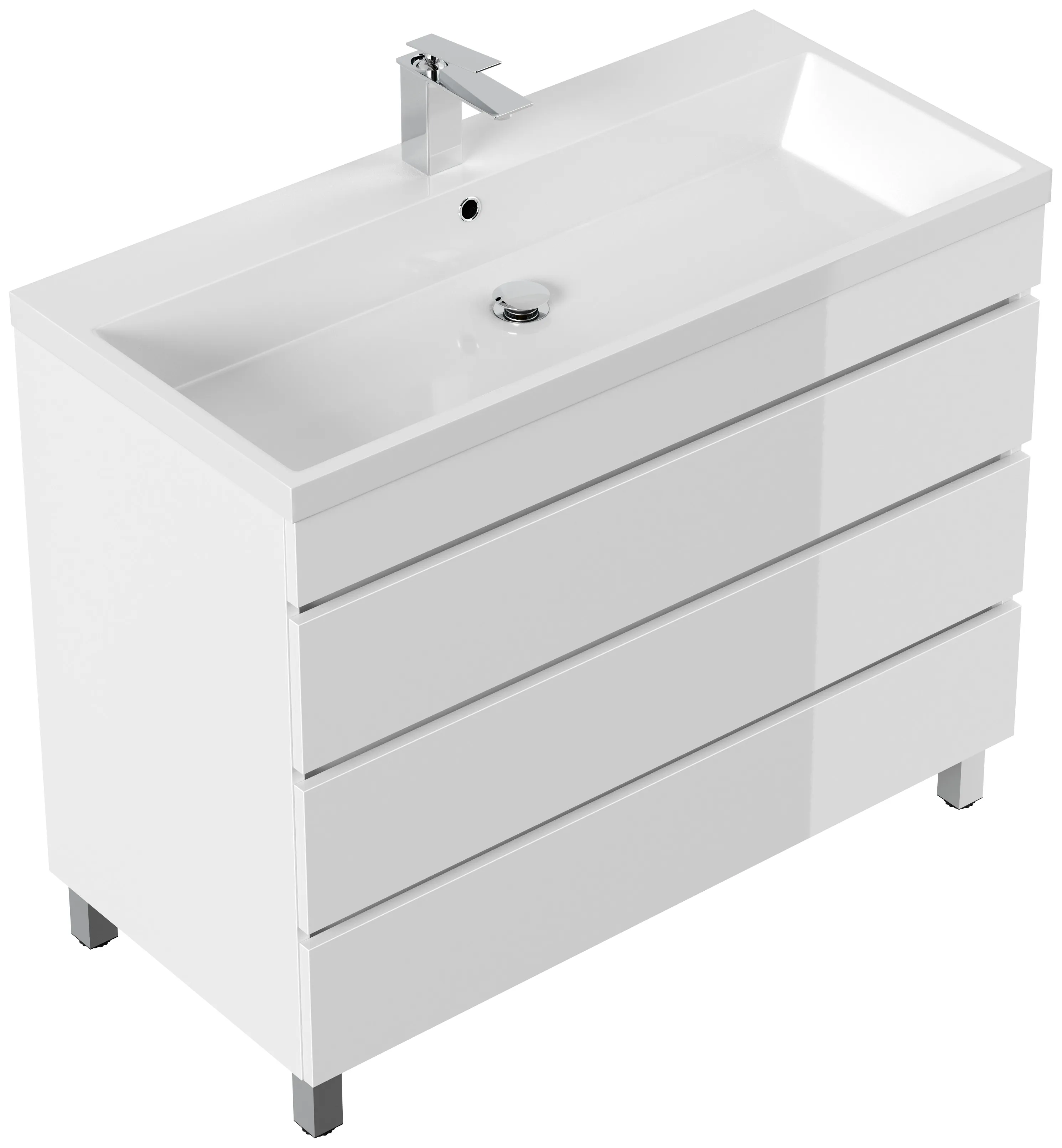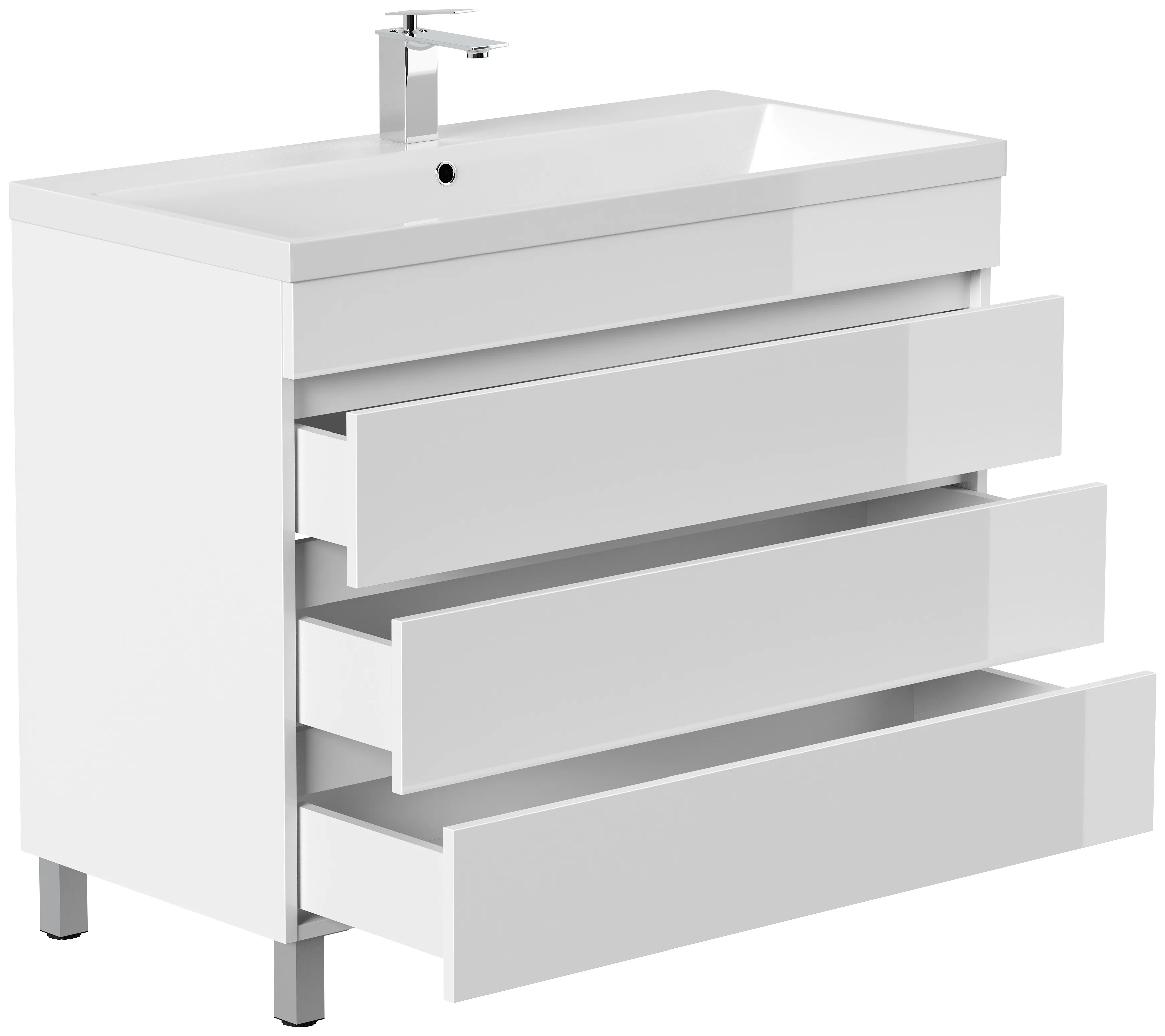Stand Badmöbel Fellini 100 weiss hochglanz mit drei grifflosen Schubladen