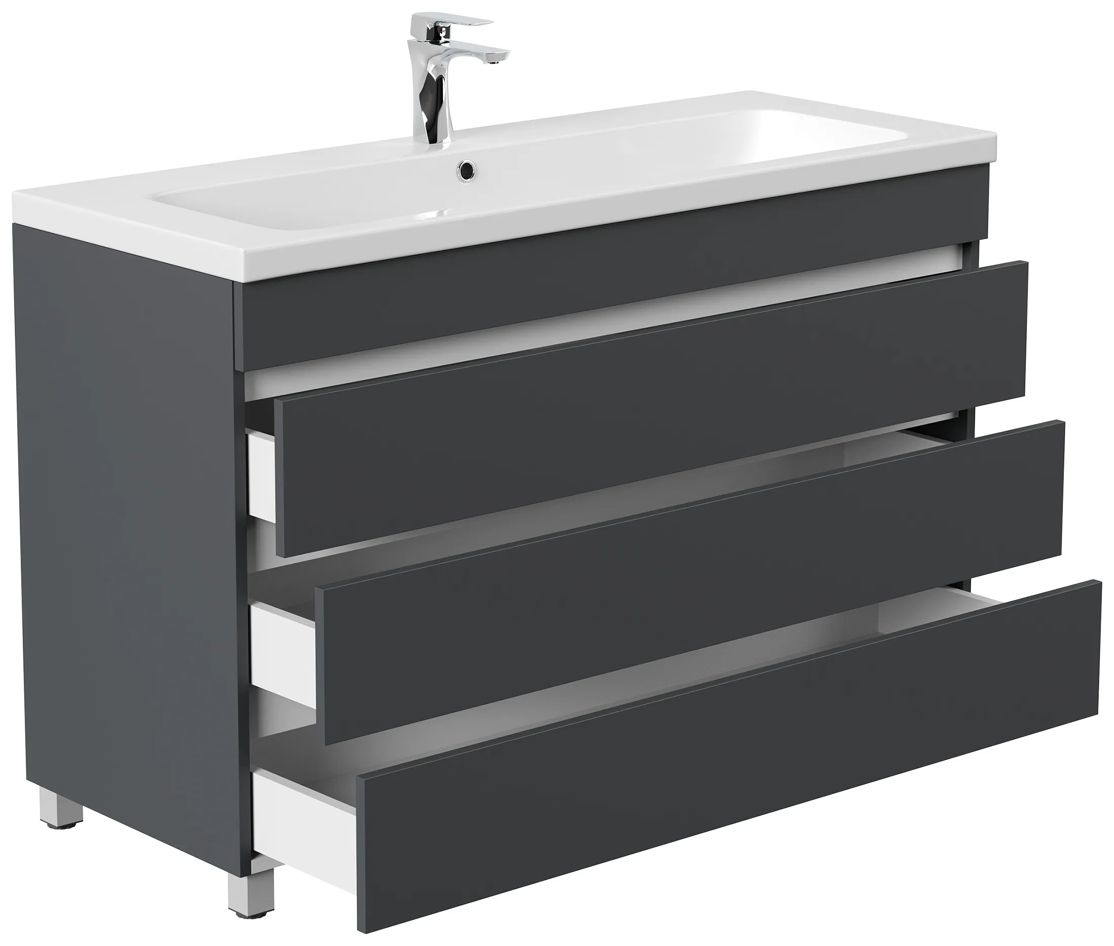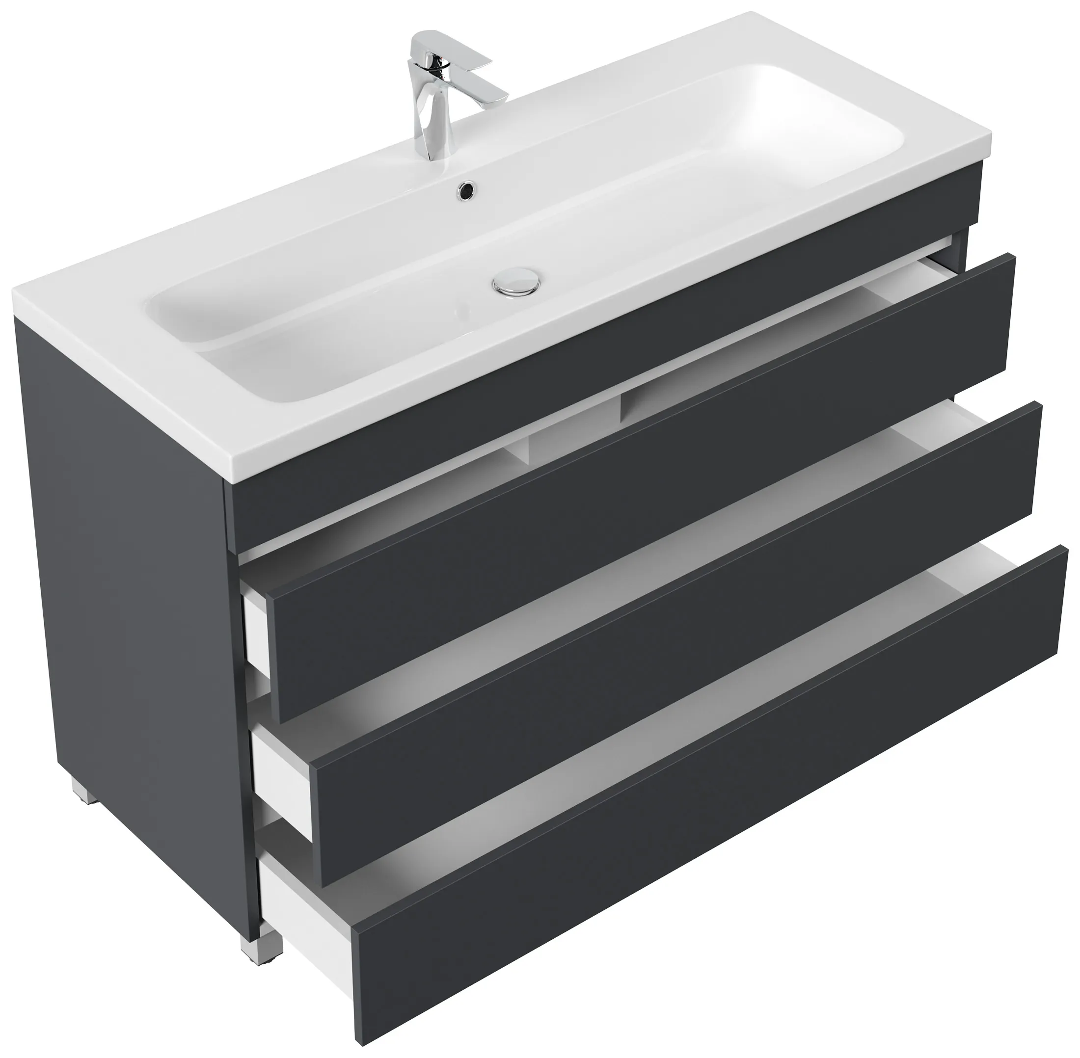 Stand Badmöbel Fellini 120 grafit mit drei grifflosen Schubladen