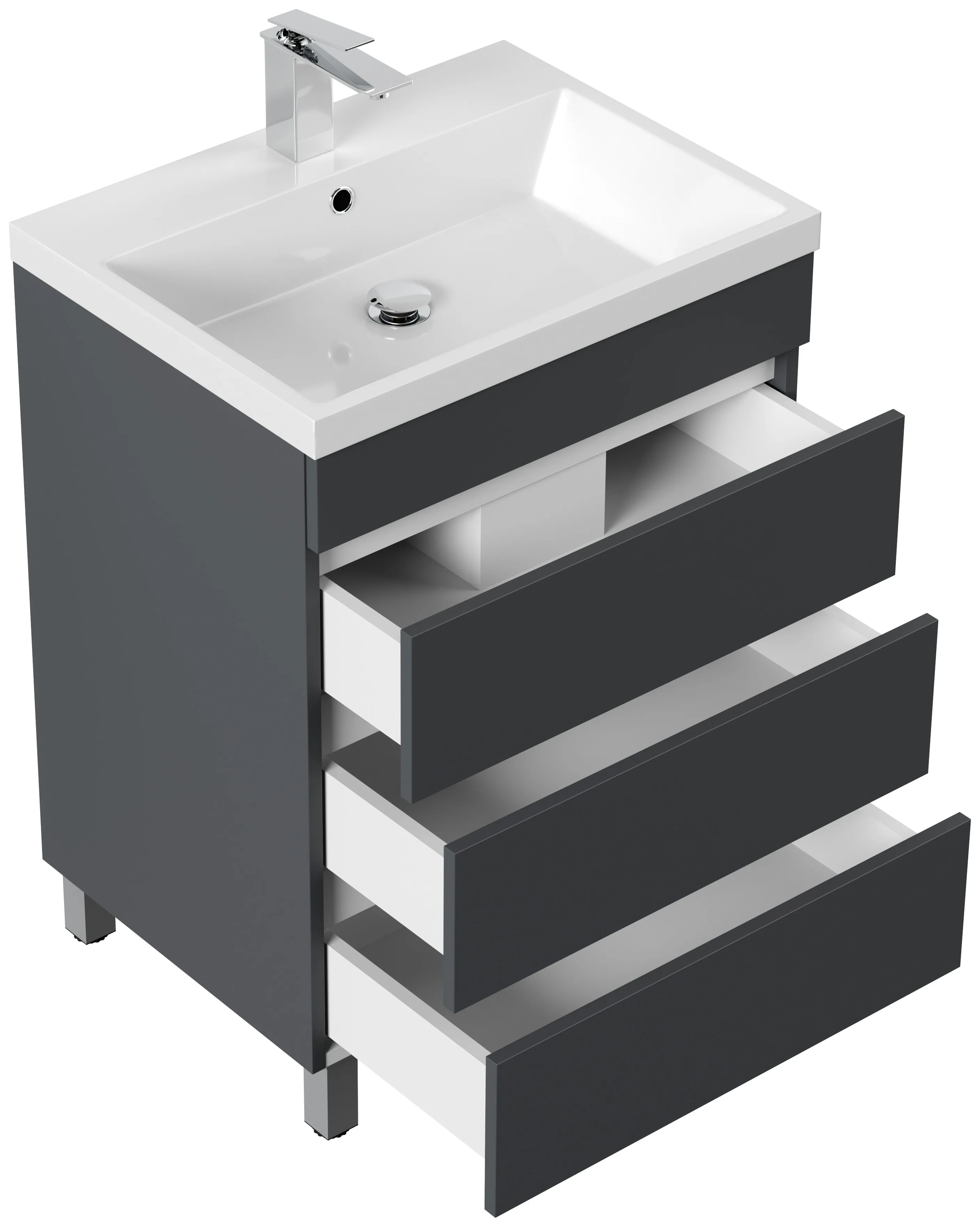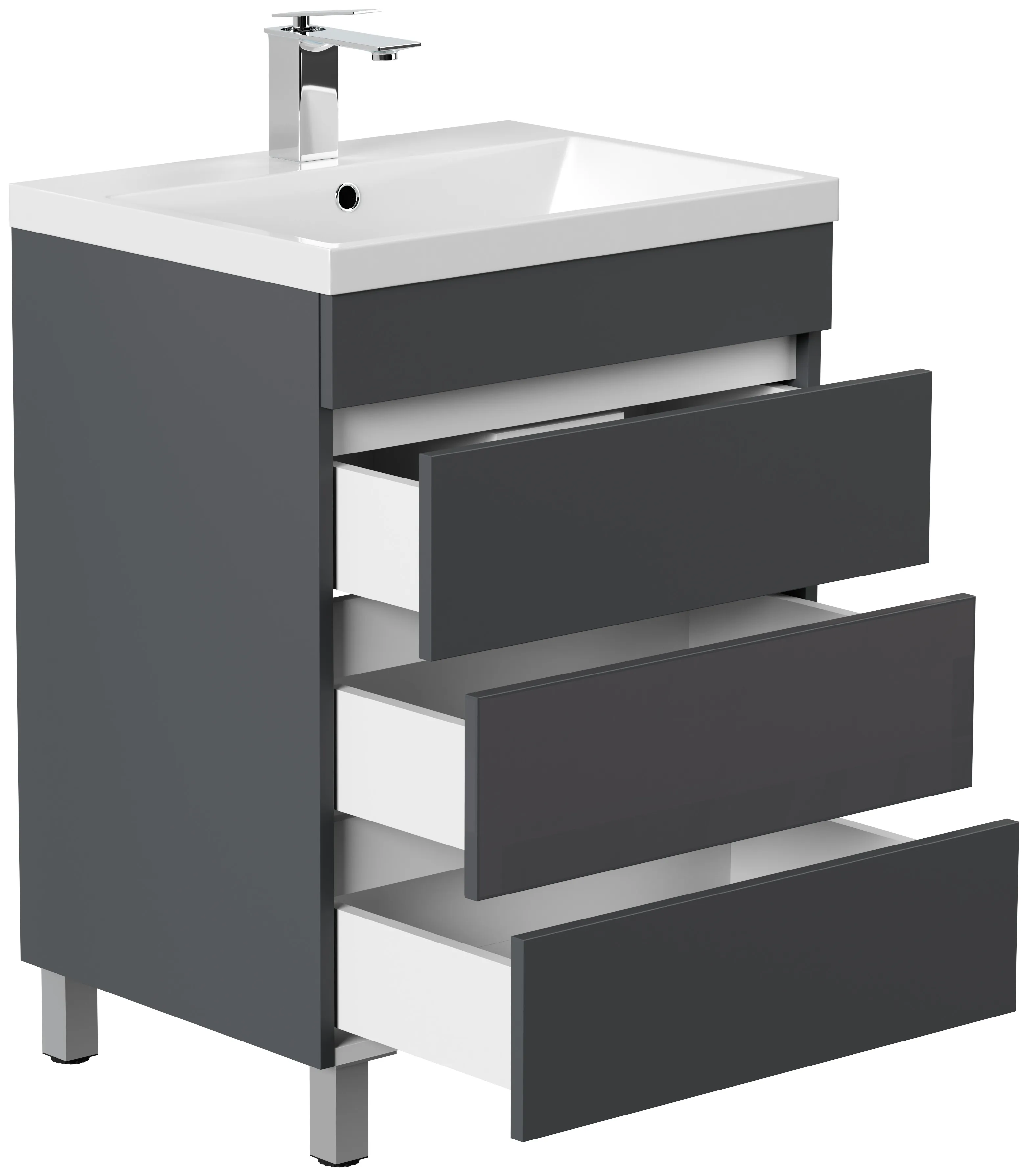 Stand Badmöbel Fellini 60 grafit mit drei grifflosen Schubladen