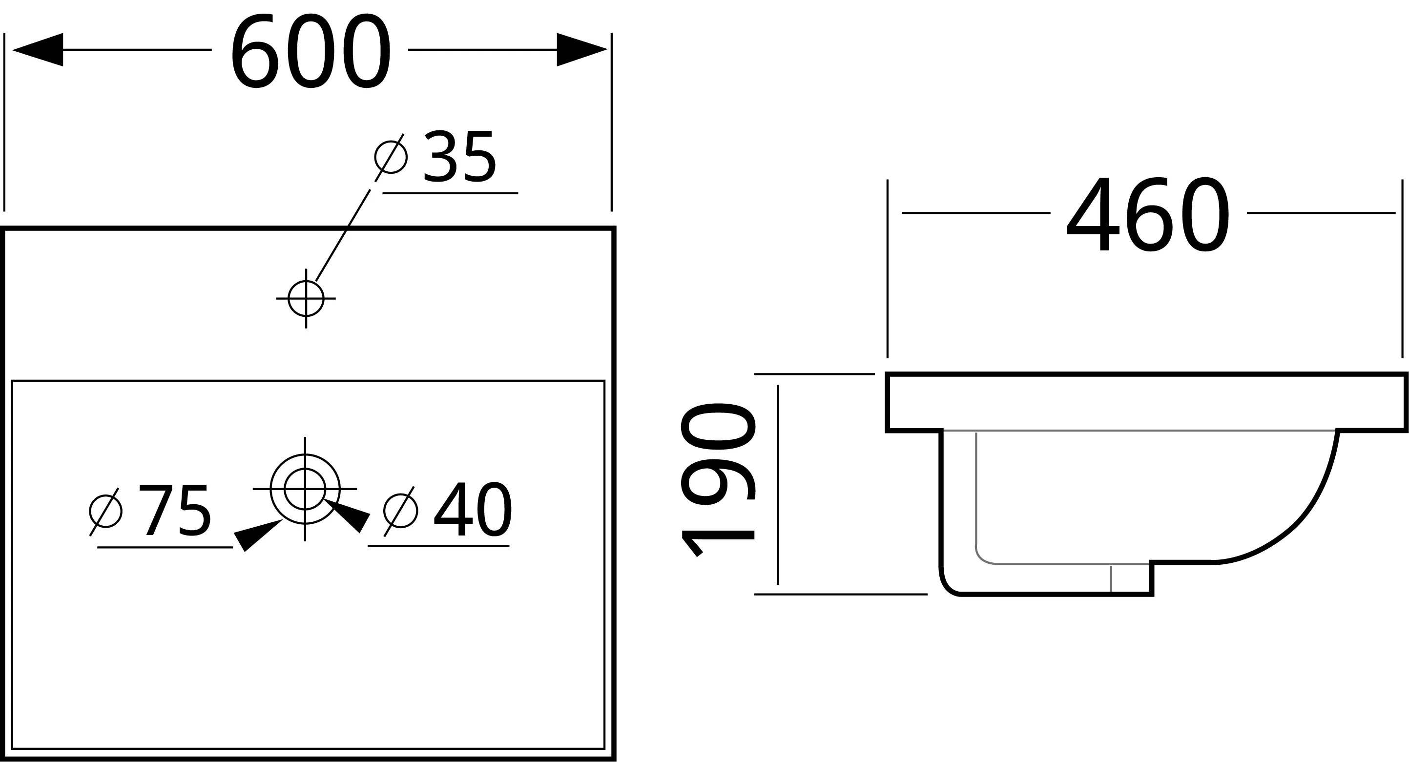 Waschbecken Mineralguss: (B/H/T) 60/4/46 cm,Standfüße (Höhe min. 105mm - max. 125mm).