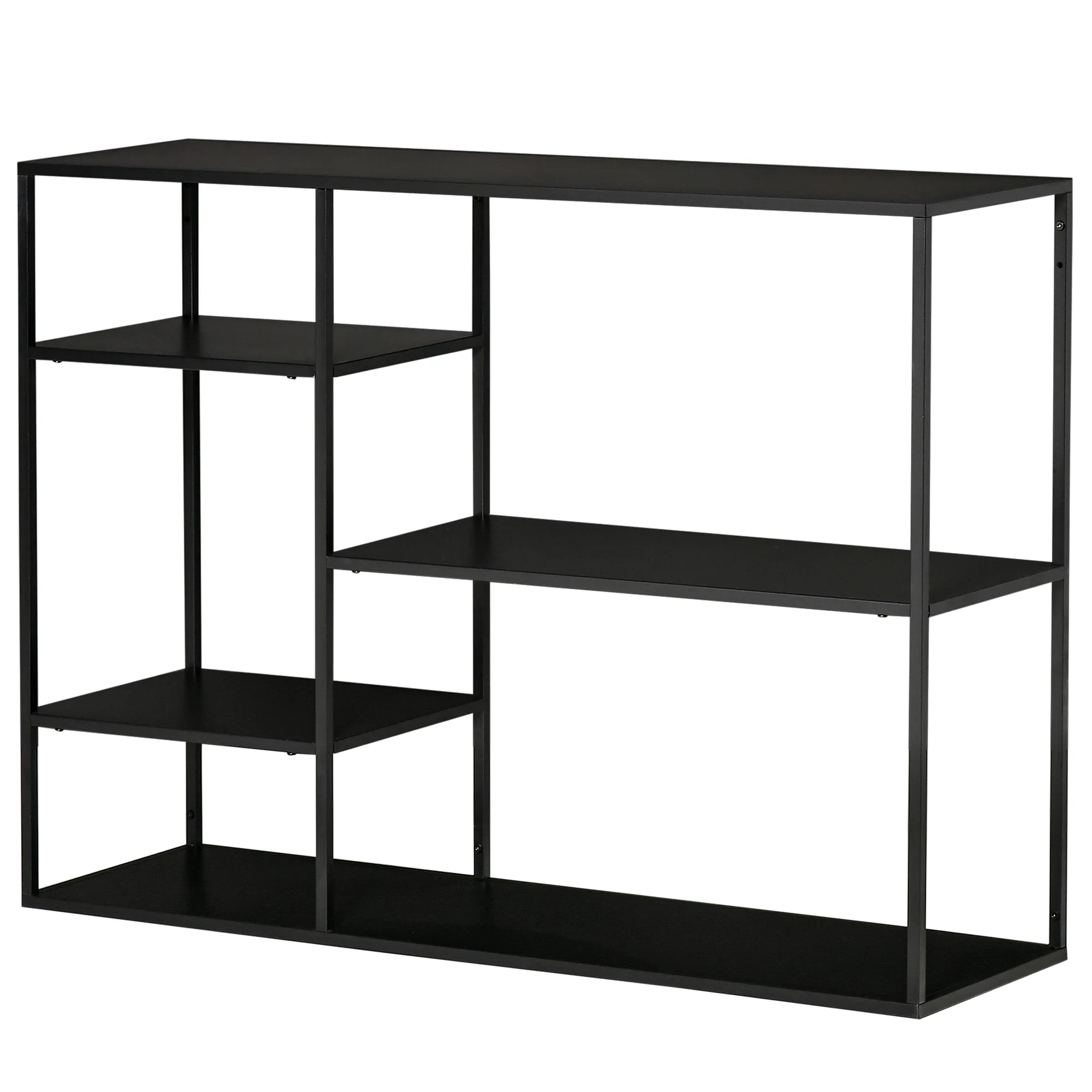 Standregal Bücherregal mit 5 offenen Fächern, Aufbewahrungsregal mit Metallrahmen, Würfelregal für Küche, Wohnzimmer, Schwarz, 120 x 35 x 87,5 cm