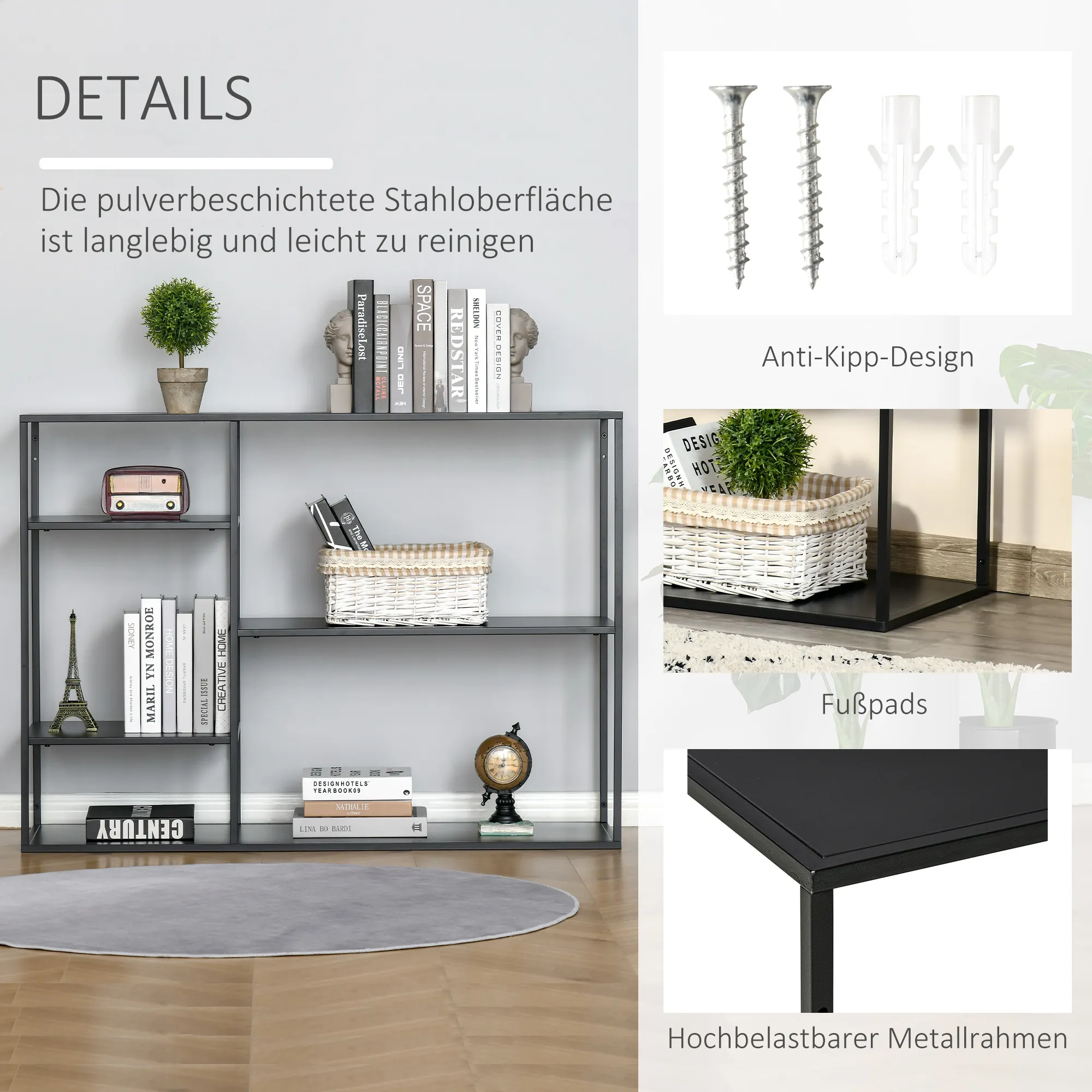 Machen Sie sich bereit, Ihren Wohnraum mit diesem Regal von zu verschönern. Mit 4 offenen Fächern und einer geräumigen Ablagefläche, die viel Platz für Bücher, Utensilien und Wohnaccessoires bietet. Der elegante Metallrahmen sorgt für Robustheit und Stabilität. Die pulverbeschichtete Stahloberfläche ist langlebig und leicht zu reinigen. Geeignet für die Aufbewahrung von Werkzeugen und Vorräten sowie von Pflanzen und Büchern.