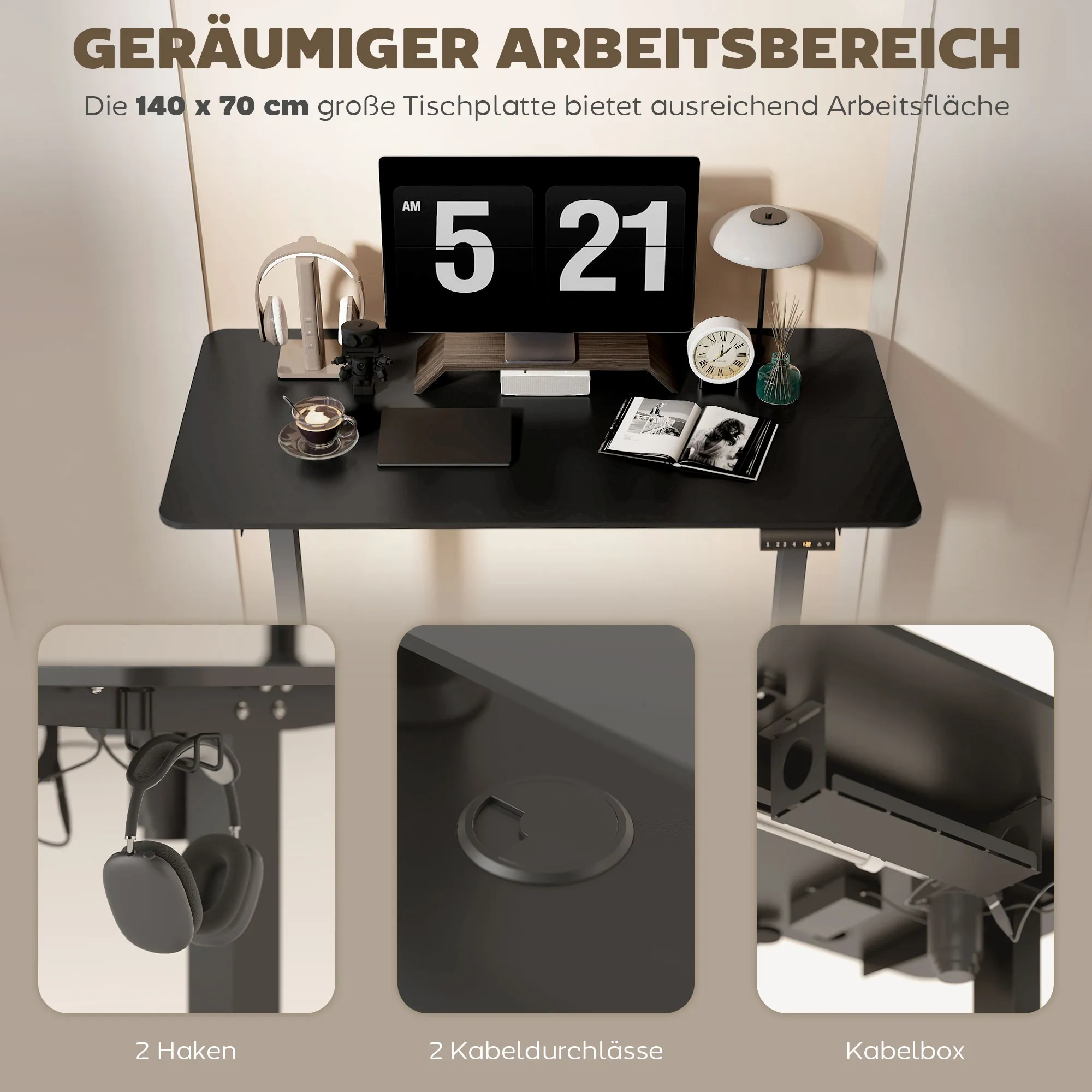 - Großzügige Arbeitsfläche von 140 x 70 cm bietet viel Platz zum Arbeiten