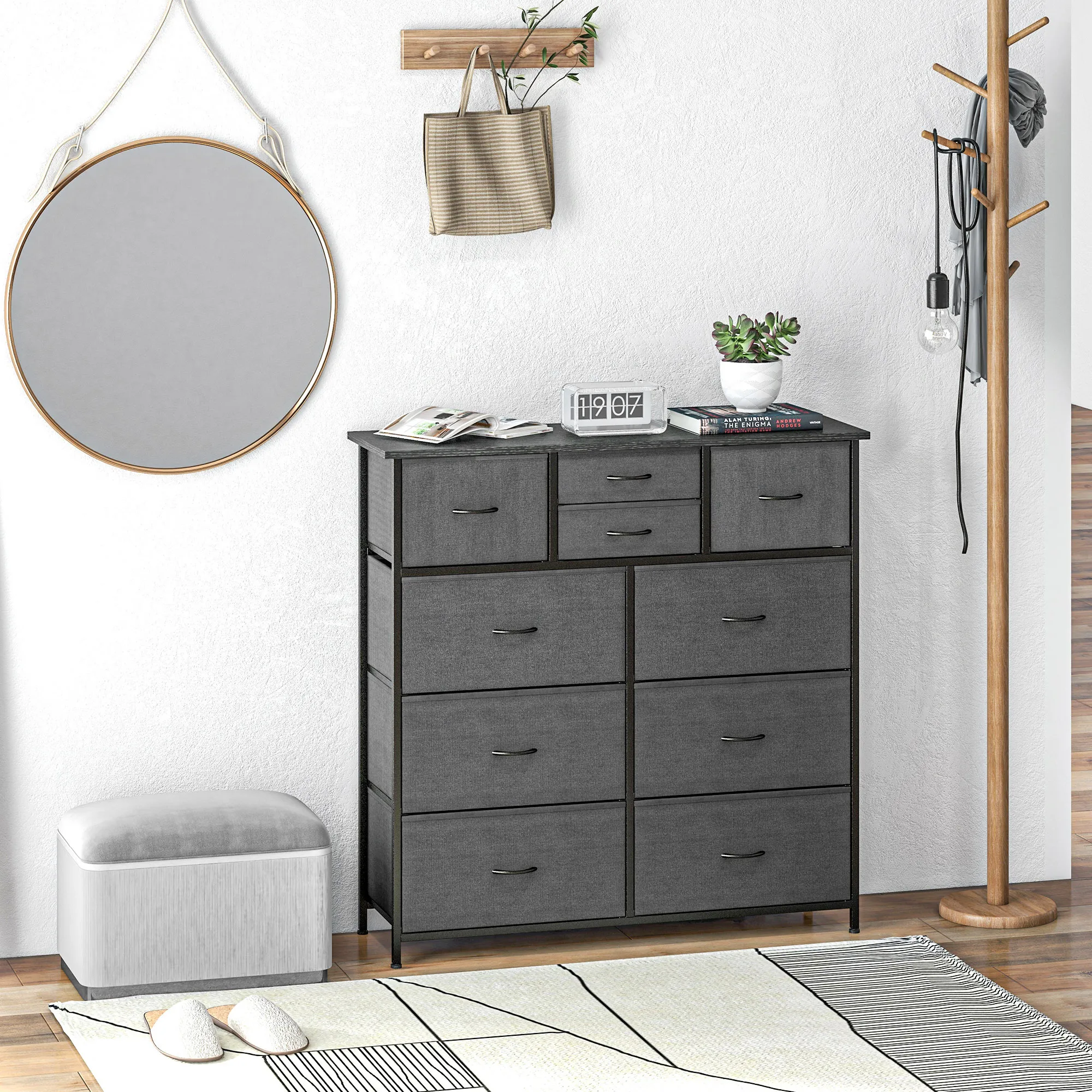 - Die Kommode ist mit zehn Schubladen ausgestattet – zwei kleinen, zwei mittleren und sechs großen – und bietet somit reichlich Platz für Kleidung und andere Gegenstände.