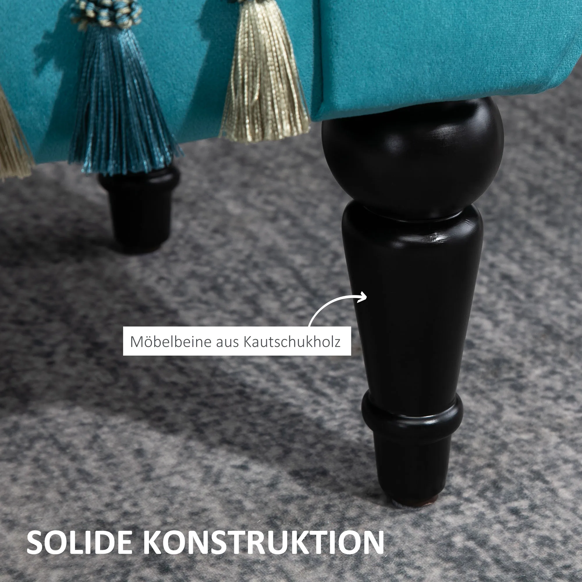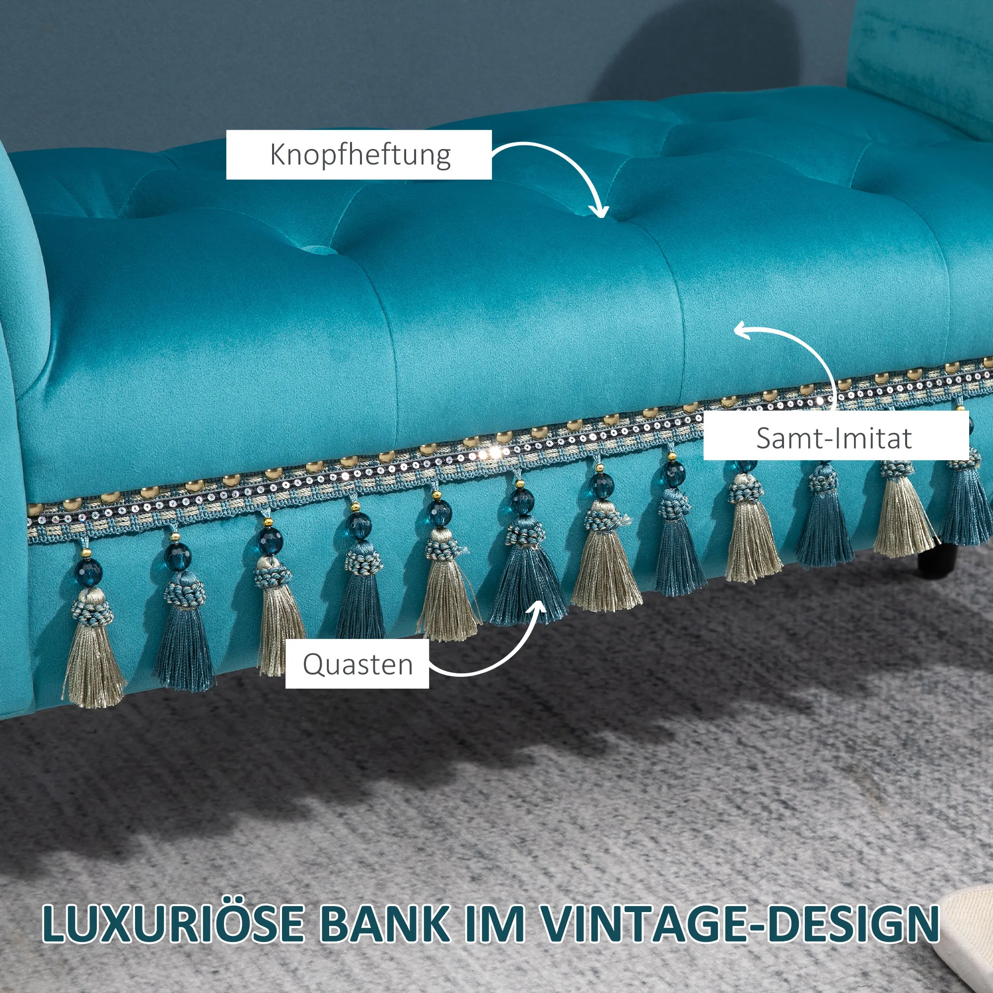 Verleihe deinem Zuhause einen Hauch von Eleganz mit dieser stilvollen Sitzbank. Ihr luxuriöses Vintage-Design, gekennzeichnet durch die schöne Knopfheftung und geschwungene Formen, zitiert die Ästhetik vergangener Epochen. Gefertigt aus robustem Massivholz, garantiert diese Bettbank Stabilität und Langlebigkeit.