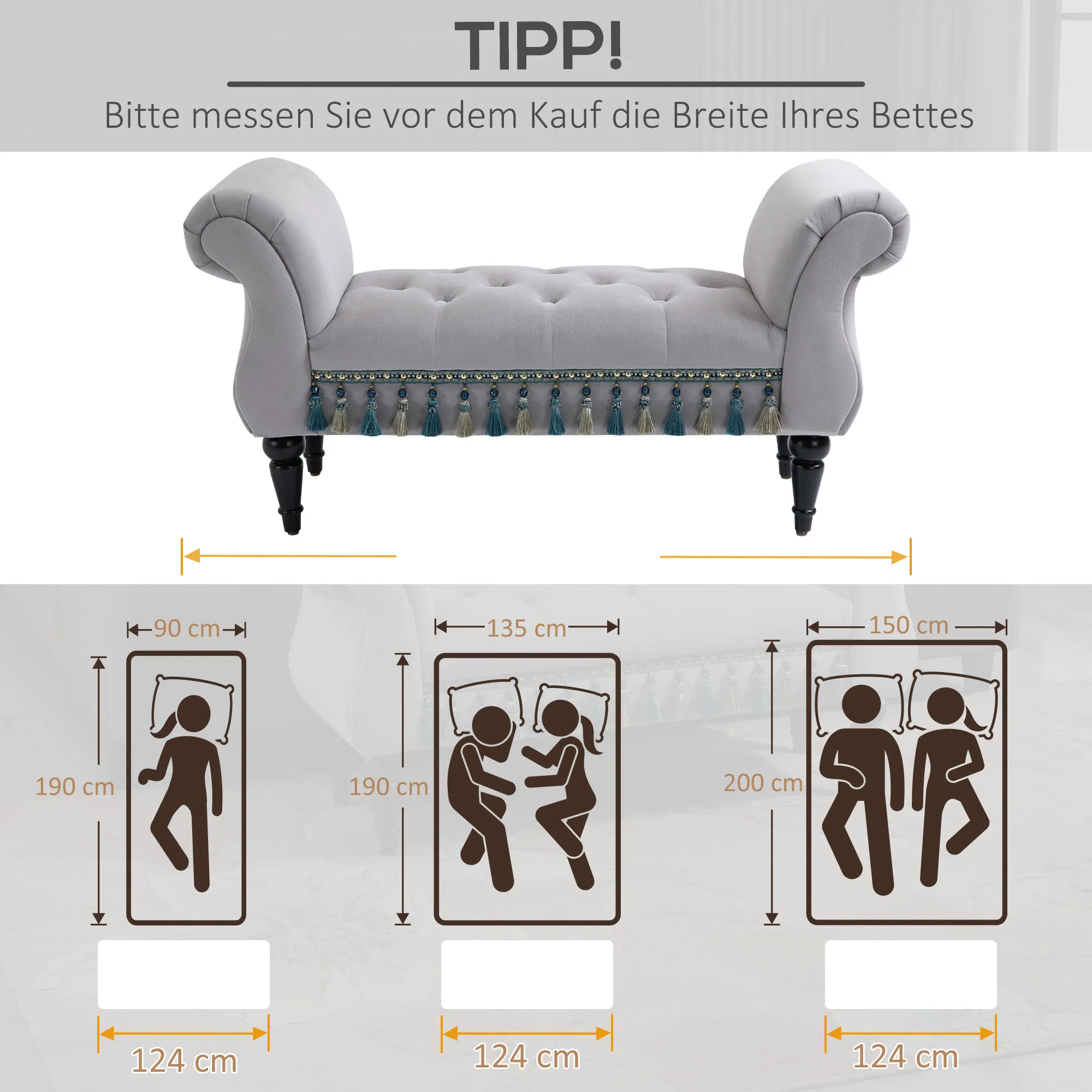 Verleihe deinem Zuhause einen Hauch von Eleganz mit dieser stilvollen Sitzbank. Ihr luxuriöses Vintage-Design, gekennzeichnet durch die schöne Knopfheftung und geschwungene Formen, zitiert die Ästhetik vergangener Epochen. Gefertigt aus robustem Massivholz, garantiert diese Bettbank Stabilität und Langlebigkeit.