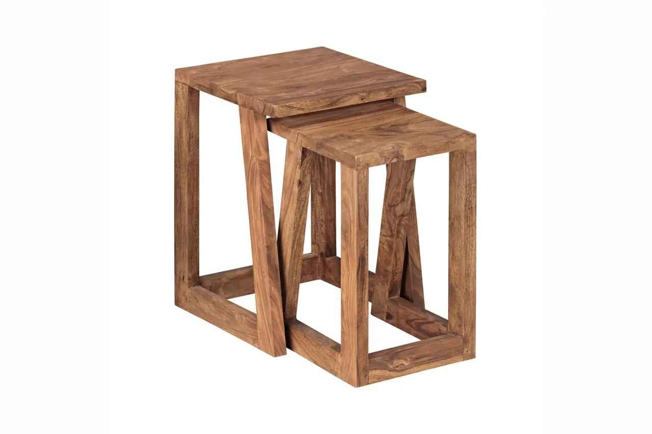 tinkaro 2er-Set Beistelltische FABIEN Massivholz Sheesham 012141 Wohnzimmer-Tische Nachttische Braun