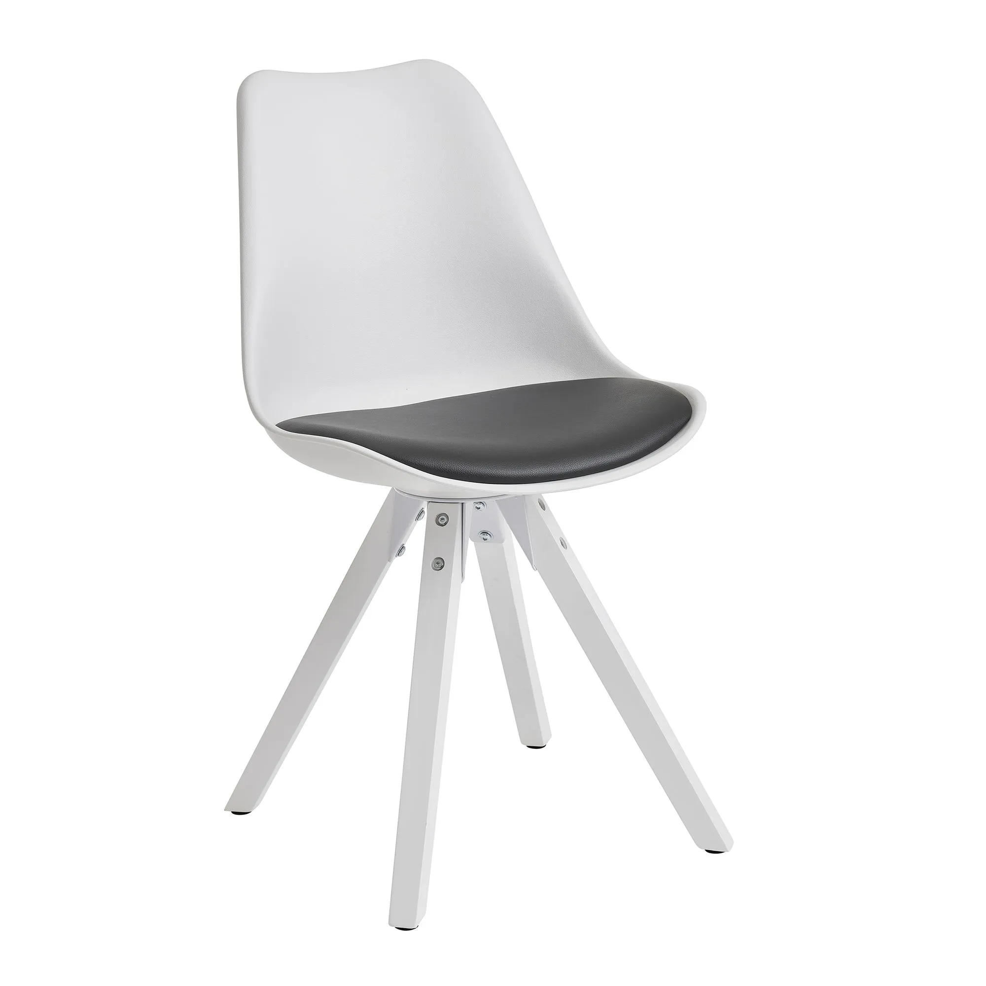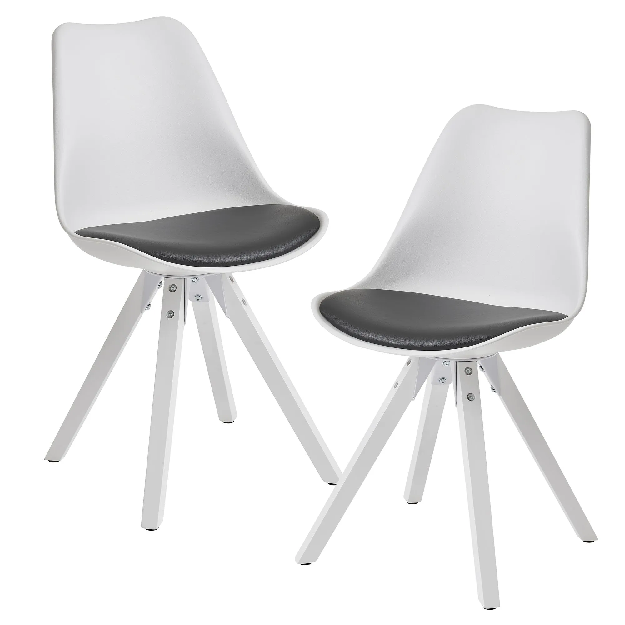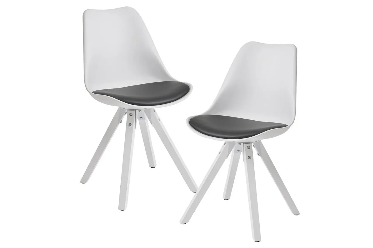 tinkaro 2er-Set Retro Schalenstühle ALBWIN Kunstleder 012367 Esszimmerstühle Speisezimmerstühle Weiß/Schwarz